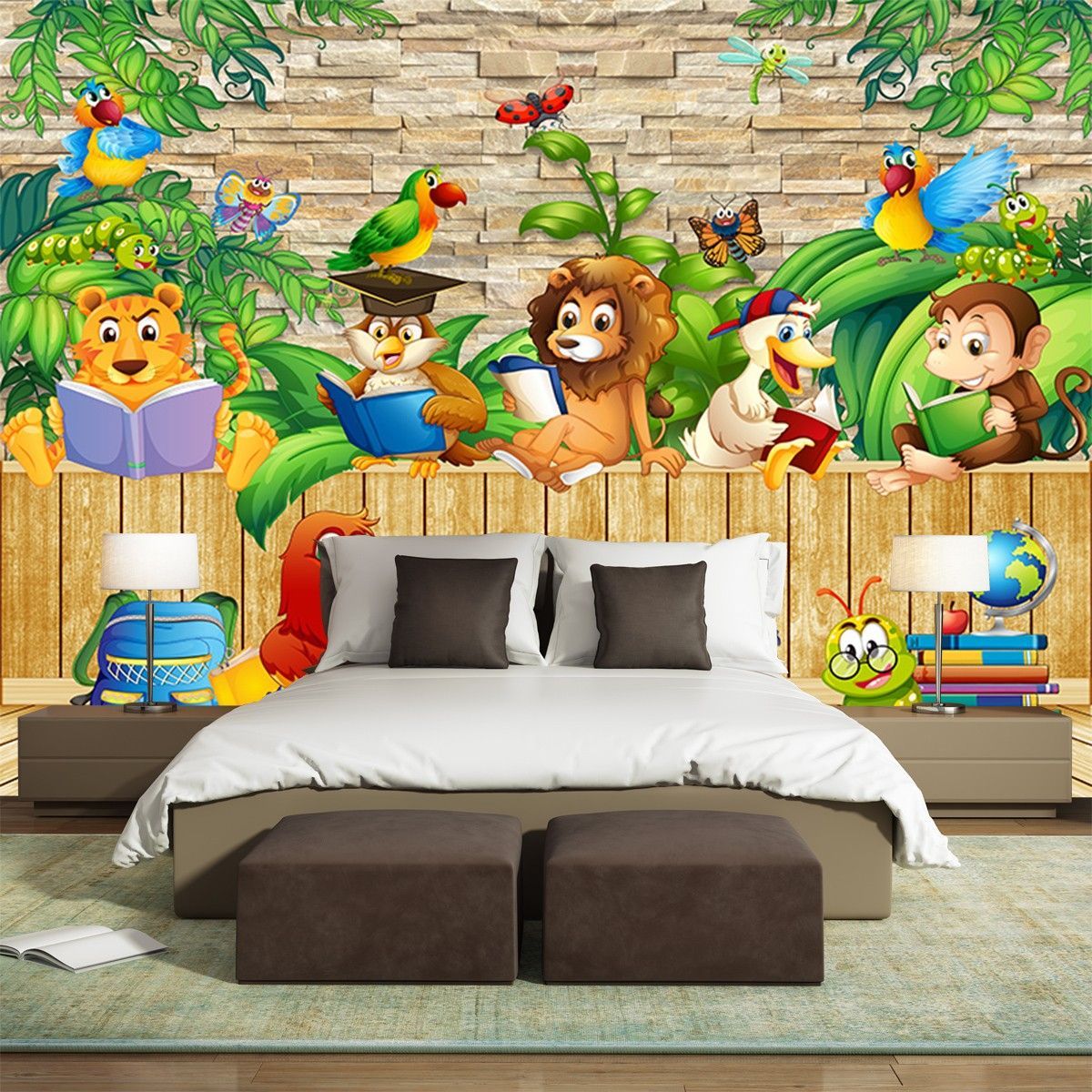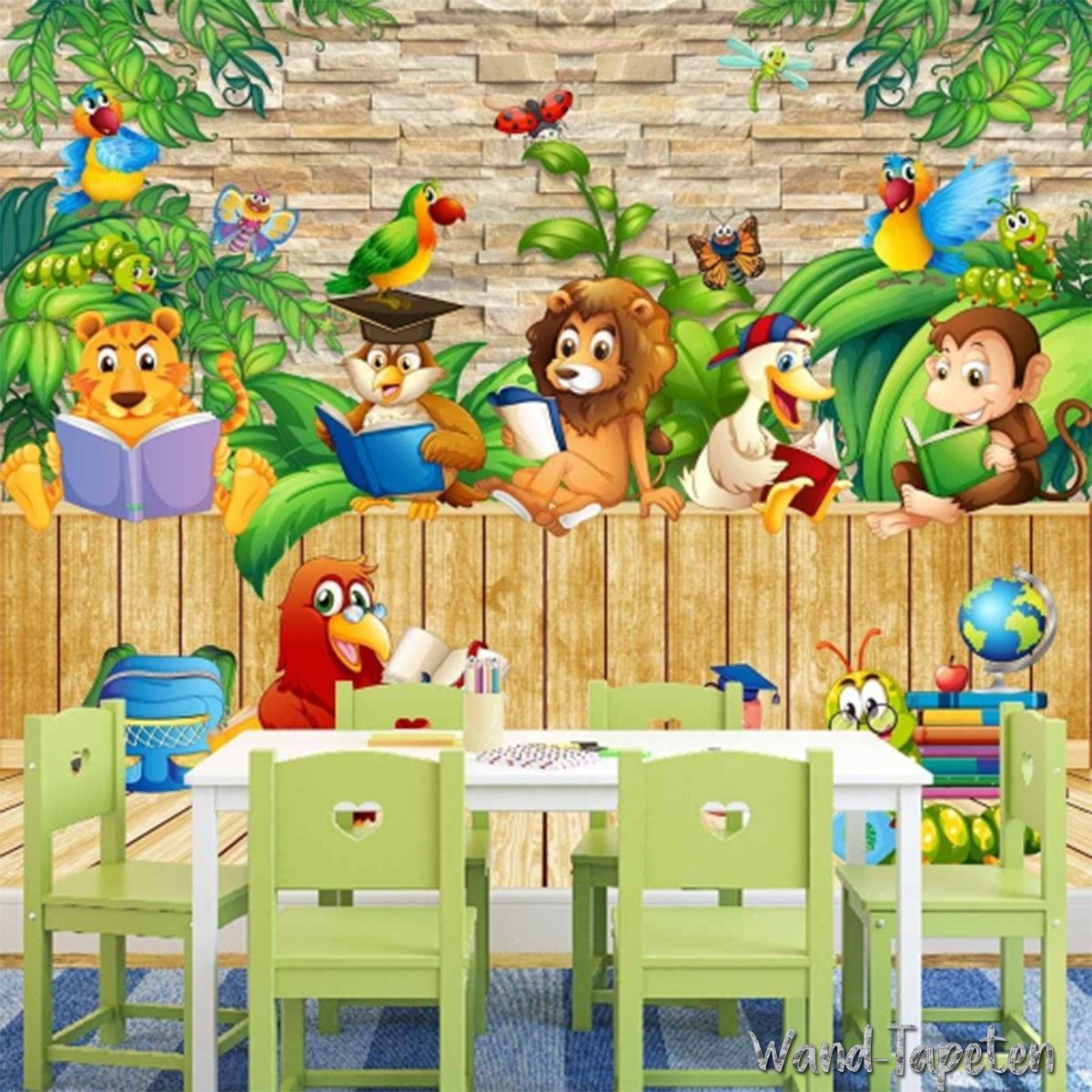 Vlies Fototapete Wandtapete Wandbilder Cartoon Kinder 3D Süße Tier Holz 2268