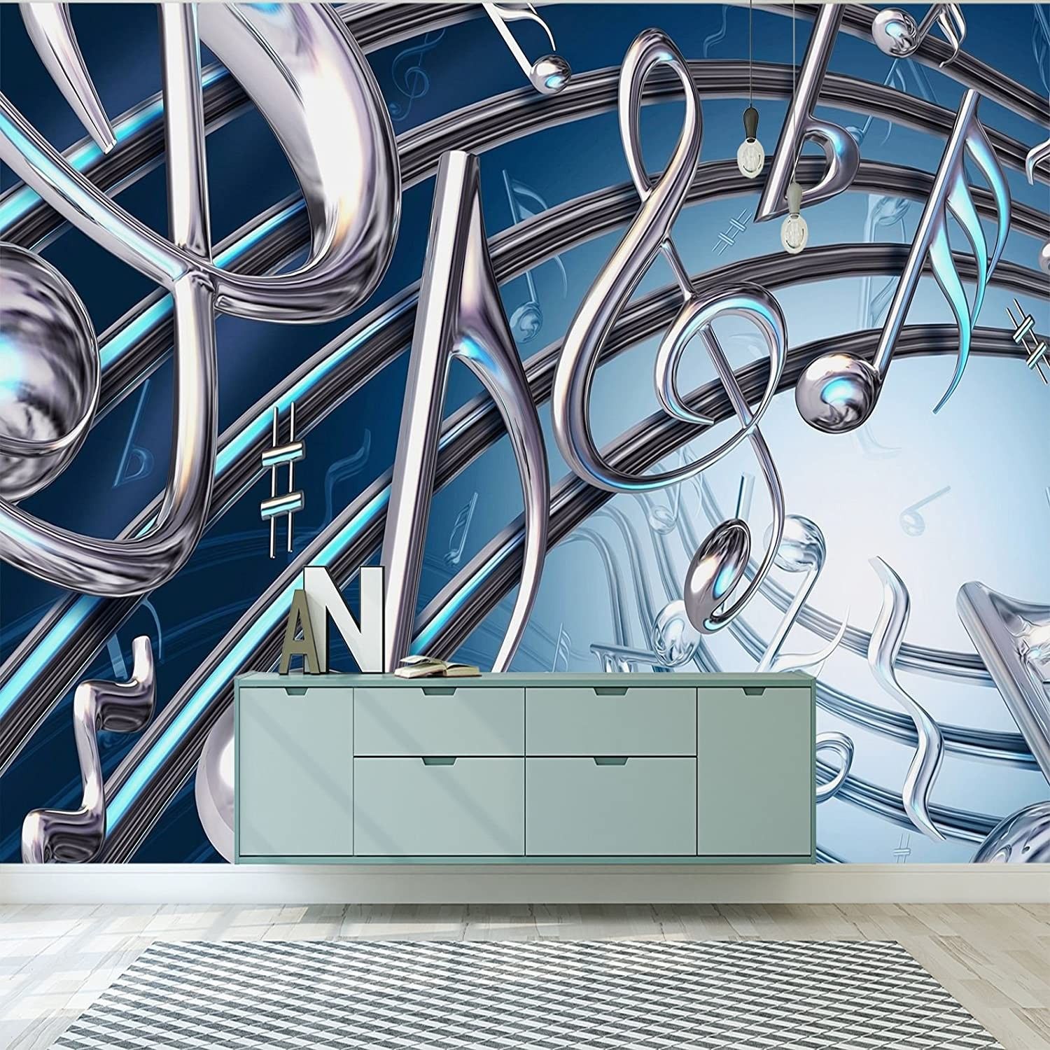 Vlies Fototapete Wandtapete Wandbilder Dynamischen Metall Muzik Noten 1411
