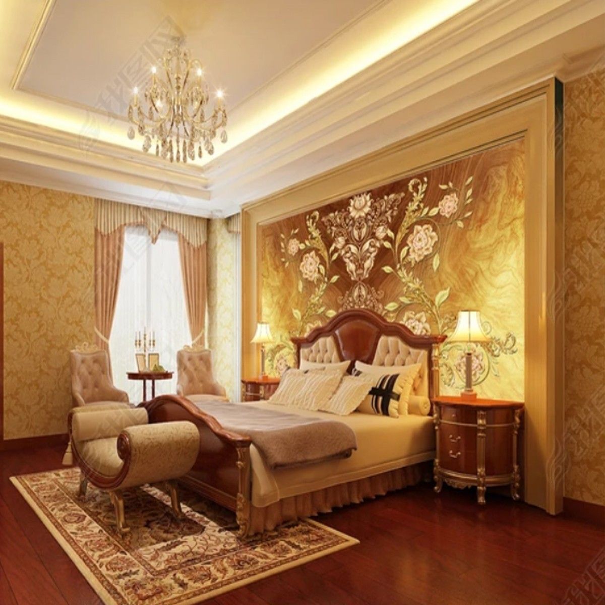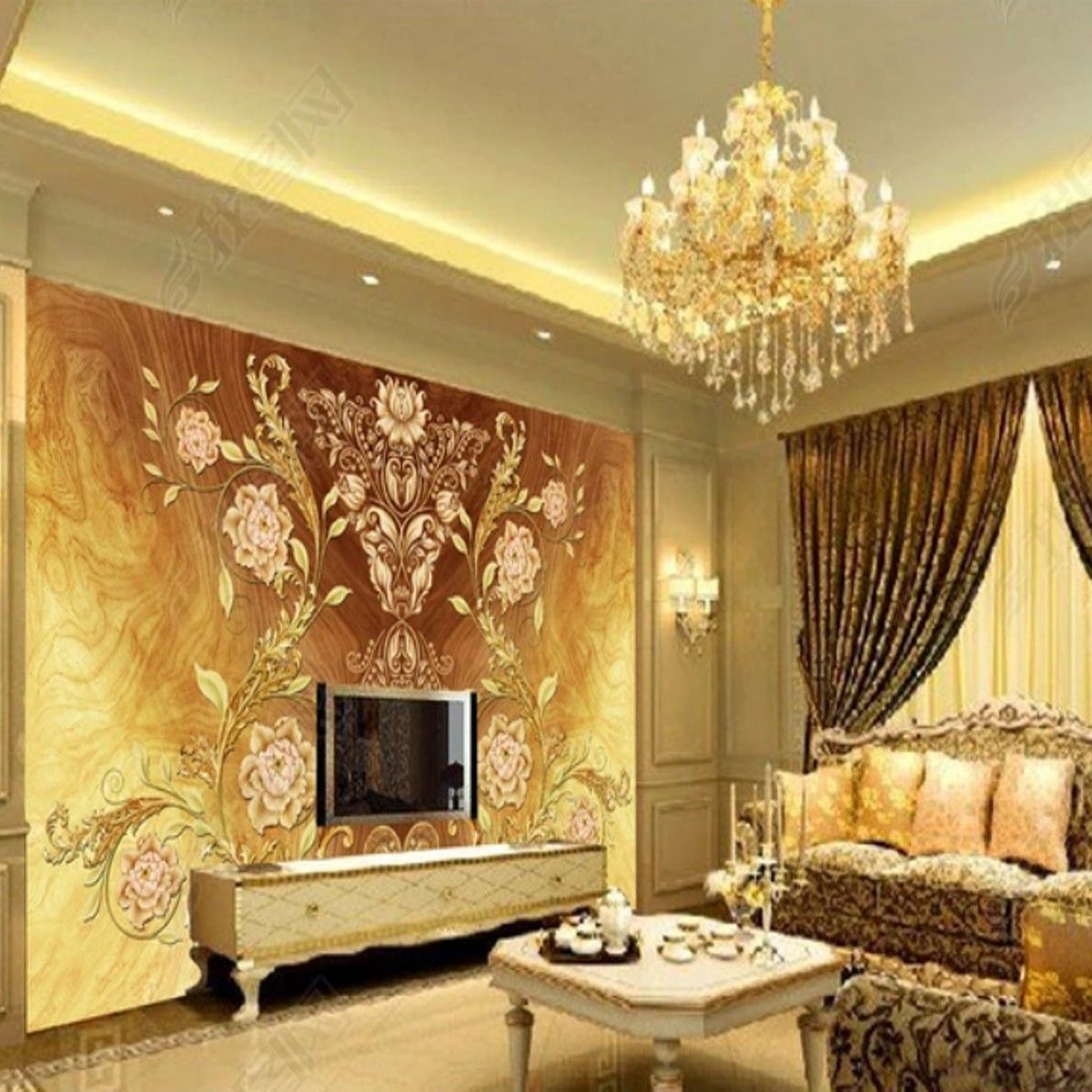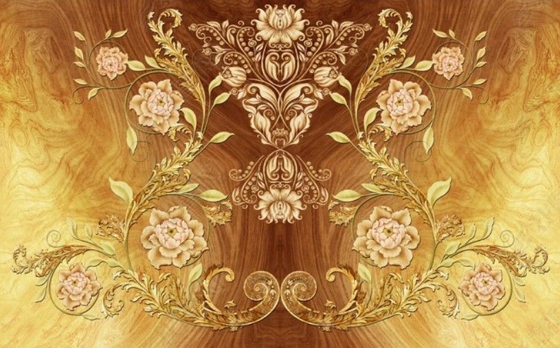 Vlies Fototapete Blumen Blau Gold TAPETE XXL Wohnzimmer Schlafzimmer