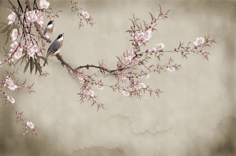 Vlies Fototapete Wandtapete Wandbilder Freihändige Blumen und Vogelkunst 11322
