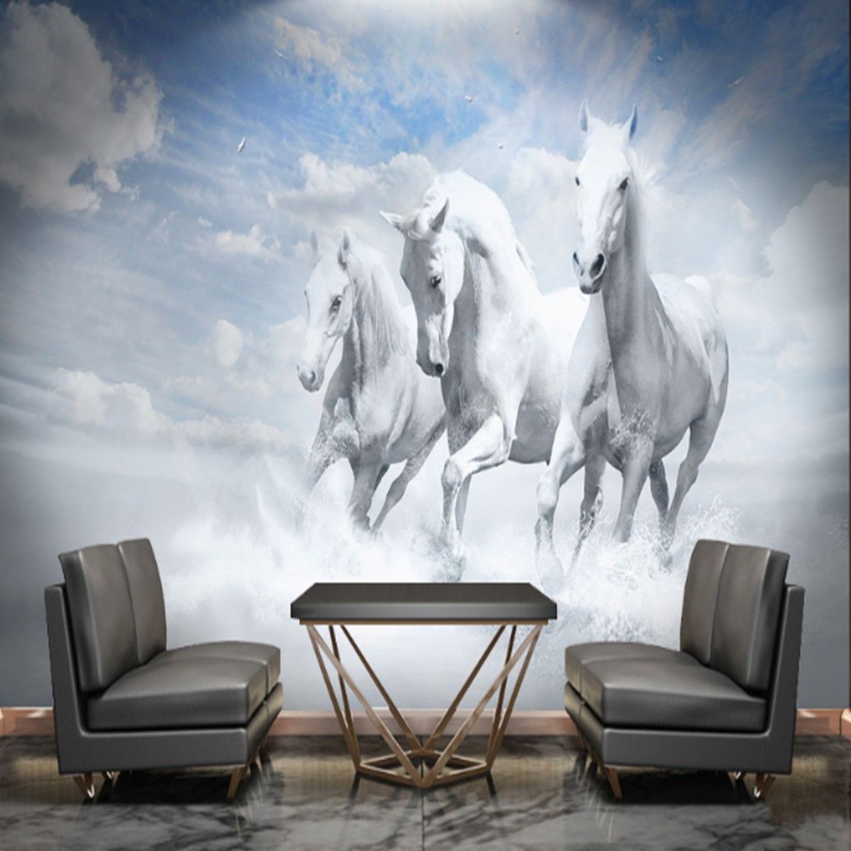 Vlies Fototapete Wandtapete Wandbilder Galoppierendem Pferd Meerblick 2261