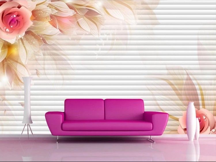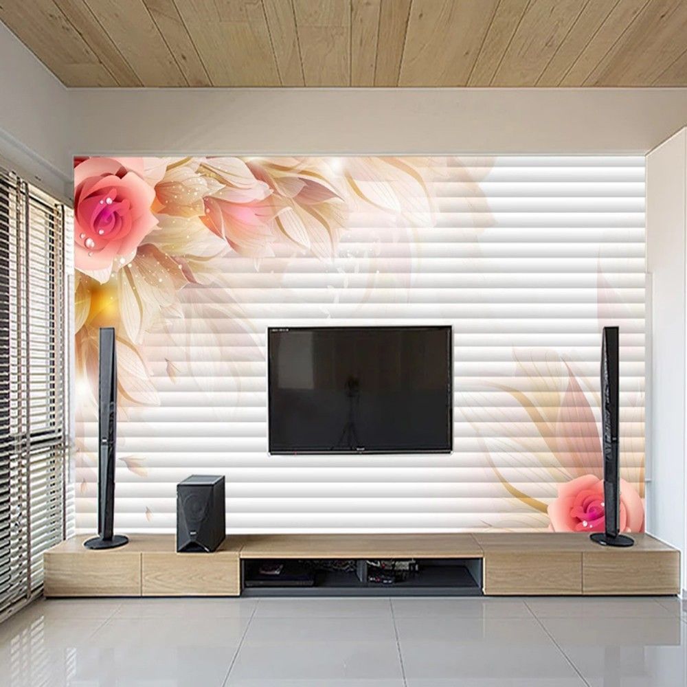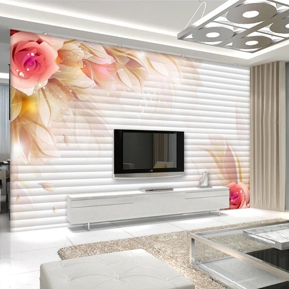 Vlies Fototapete Wandtapete Wandbilder Gestreiftes Romantisches Blumen 11831