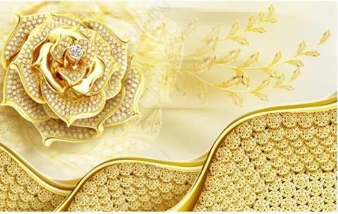 Vlies Fototapete Wandtapete Wandbilder Gold Blumenschmuck Hintergrundwand 12240