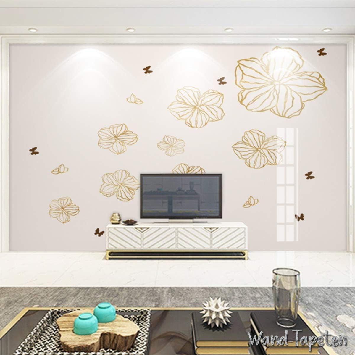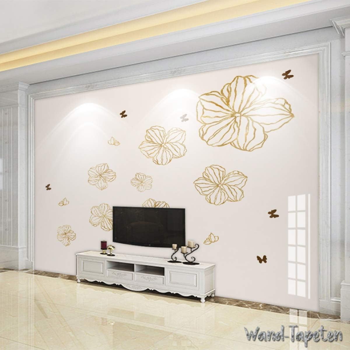 Vlies Fototapete Wandtapete Wandbilder Goldene Schmetterlings und Blumen 4396