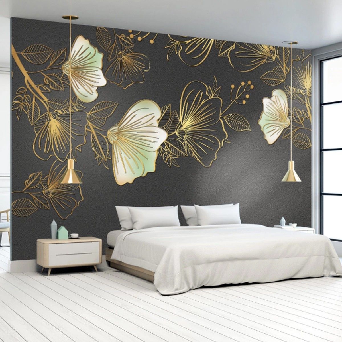 Vlies Fototapete Wandtapete Wandbilder Goldgeprägten Linien und Blumen 9899