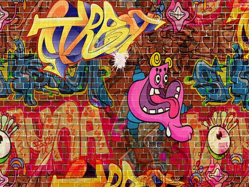 Vlies Fototapete Wandtapete Wandbilder Graffiti Wandbild aus Backstein 4147