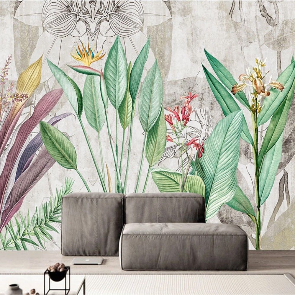 • Muralo Vlies Fototapete Bananenblätter Beton Abstraktion Retro für Wohnzimmer