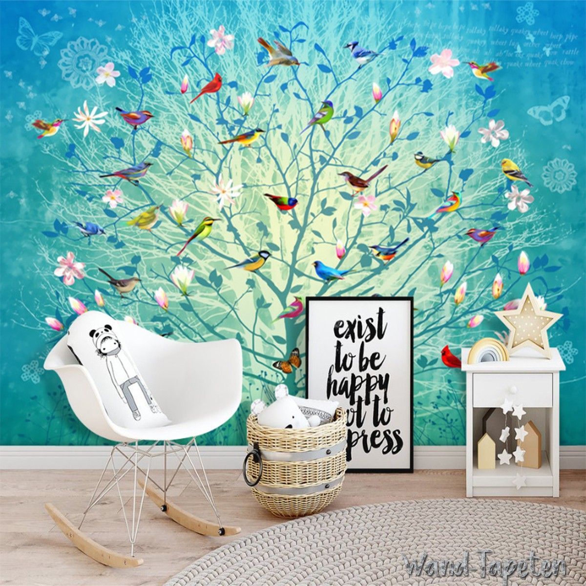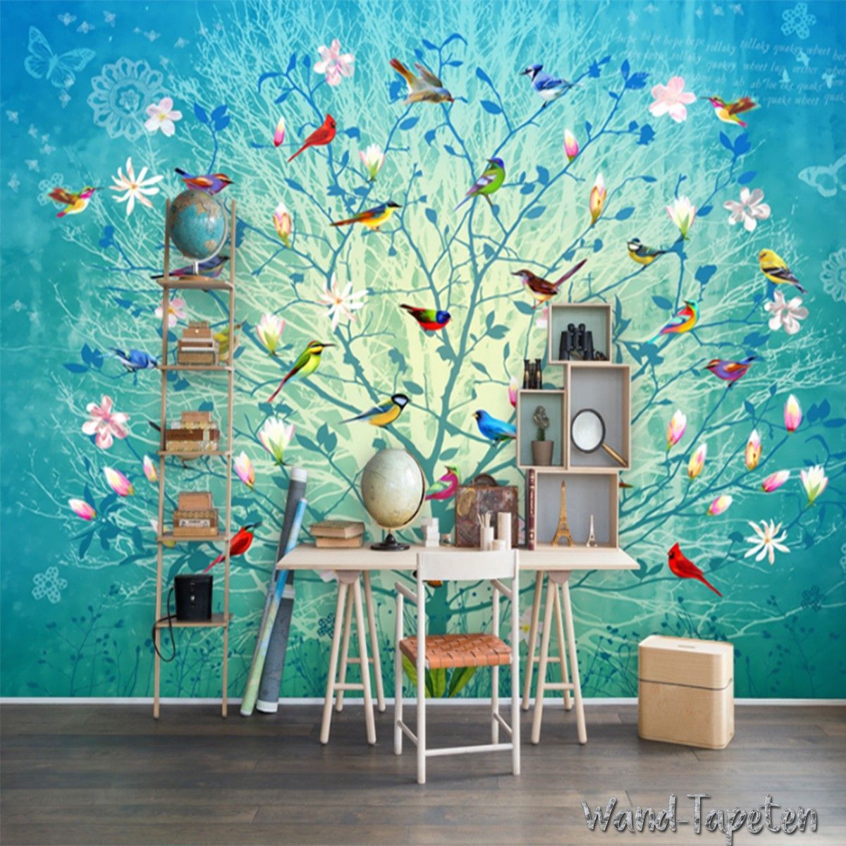 Vlies Fototapete Wandtapete Wandbilder Handgemalte Blauen Zweigen Blumen 3406