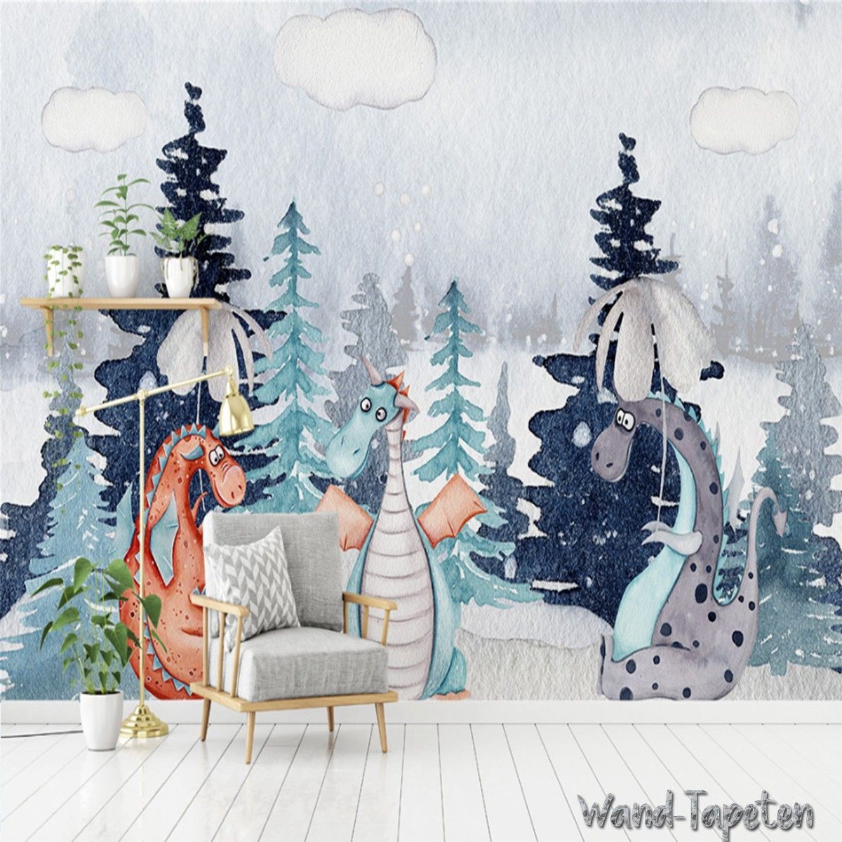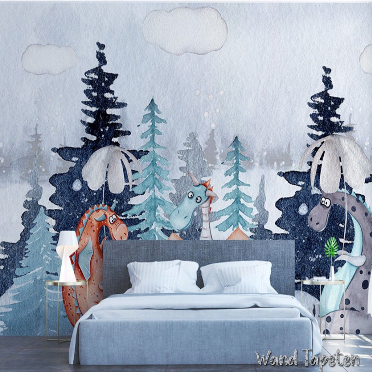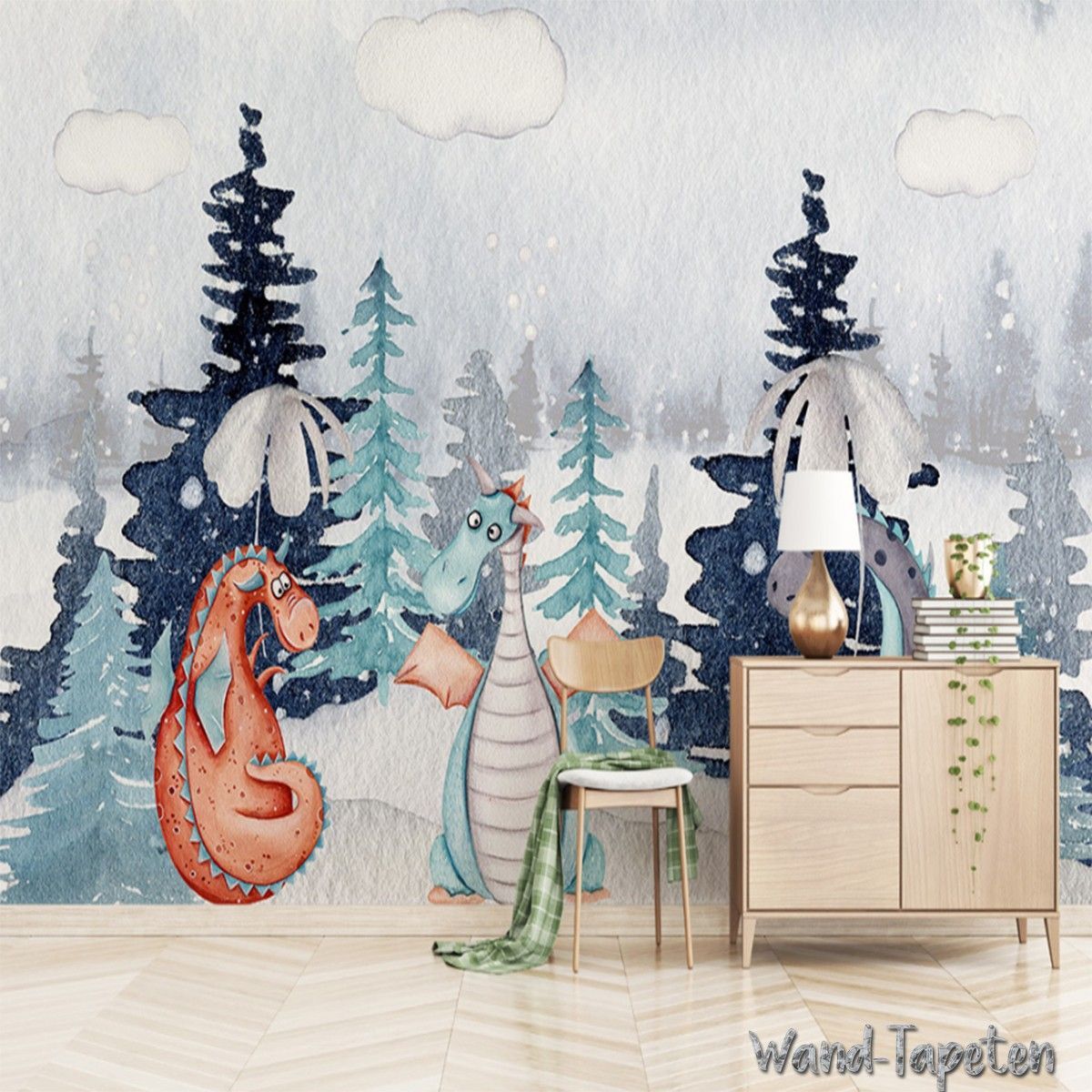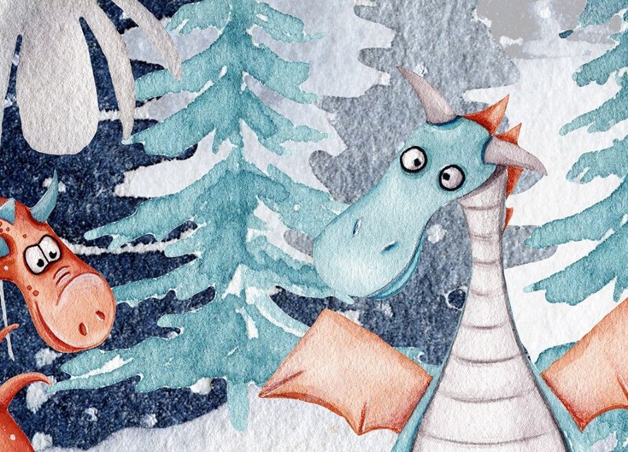 Vlies Fototapete Wandtapete Wandbilder Handgemalte Cartoon Tierwald 3374