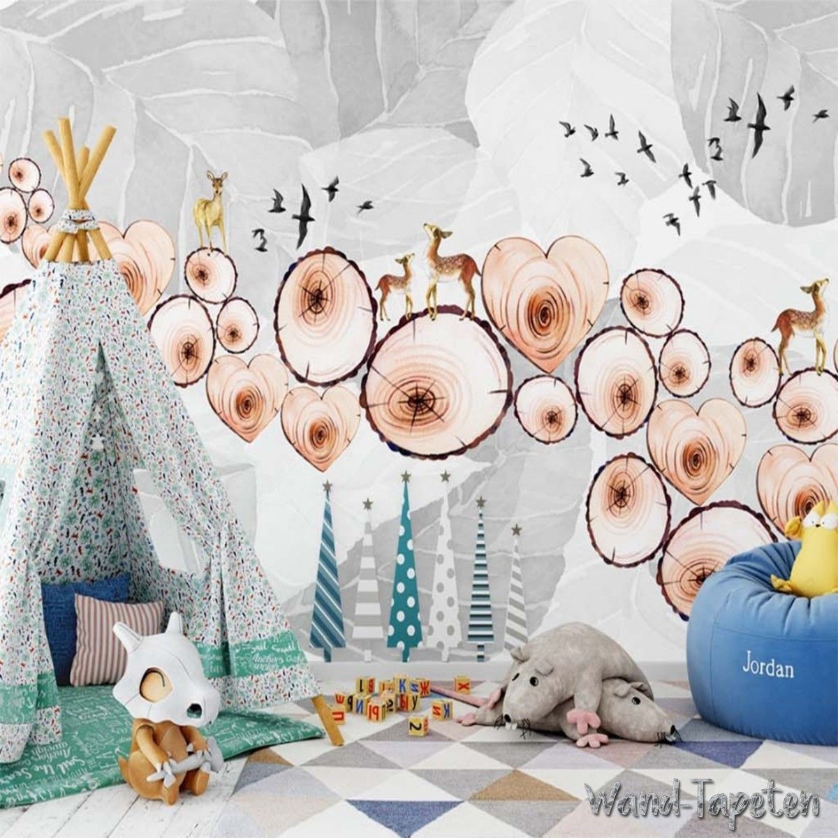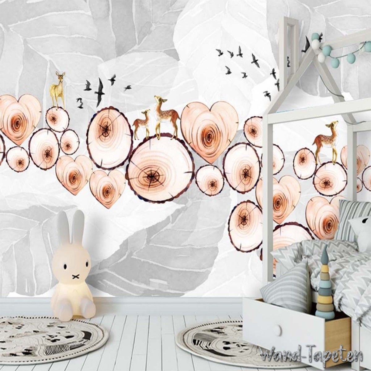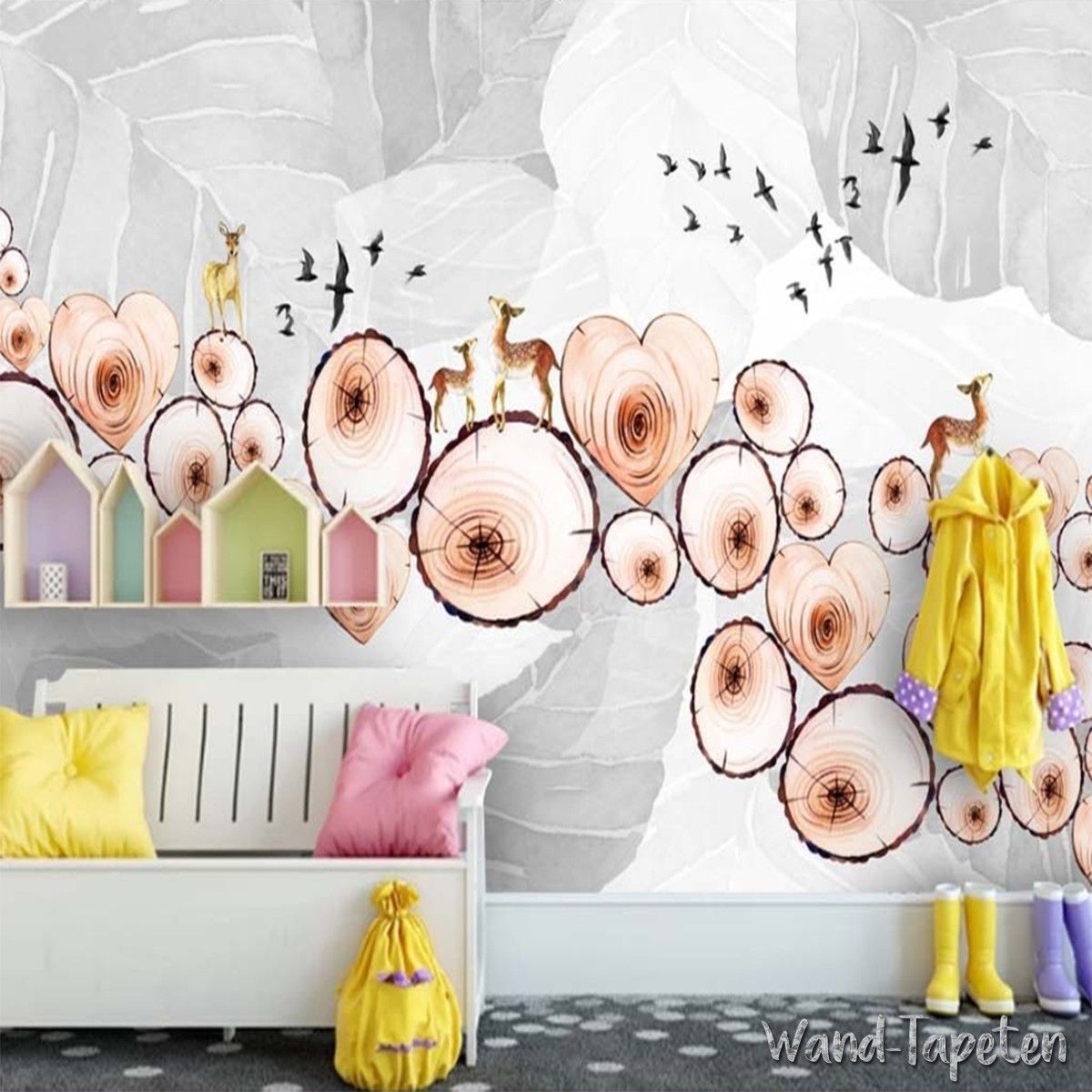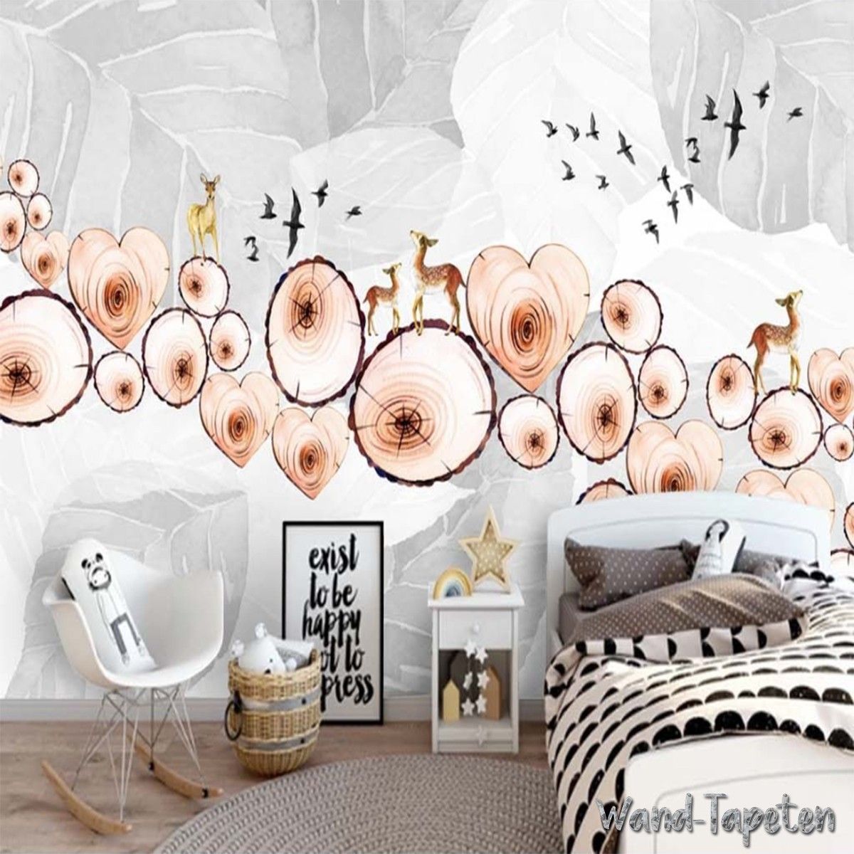 Vlies Fototapete Wandtapete Wandbilder Handgemalte Jahresringe Hirsche 3594