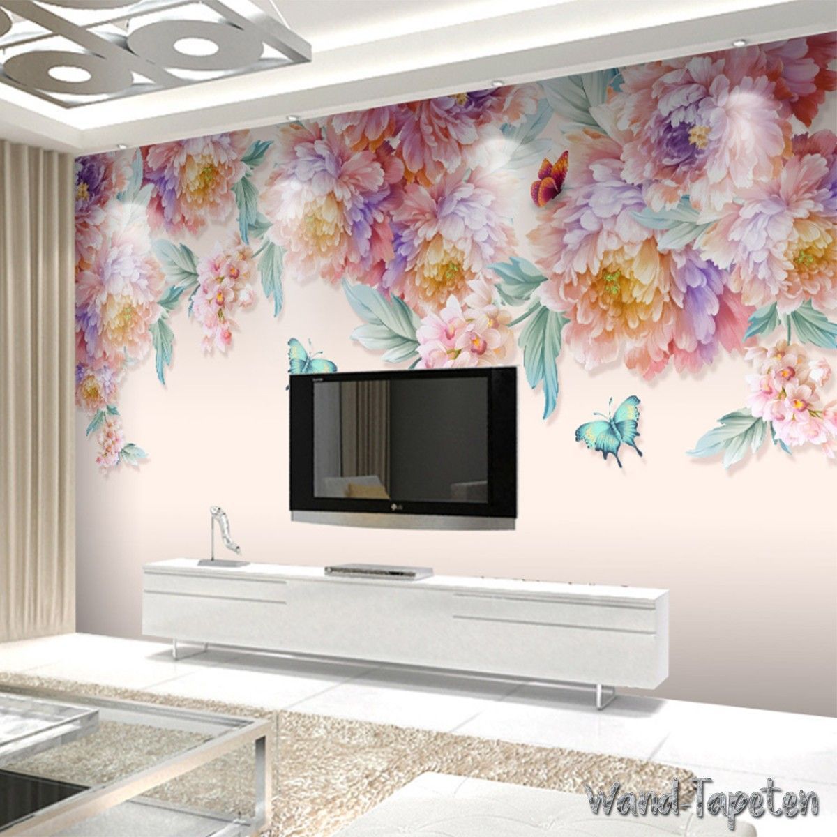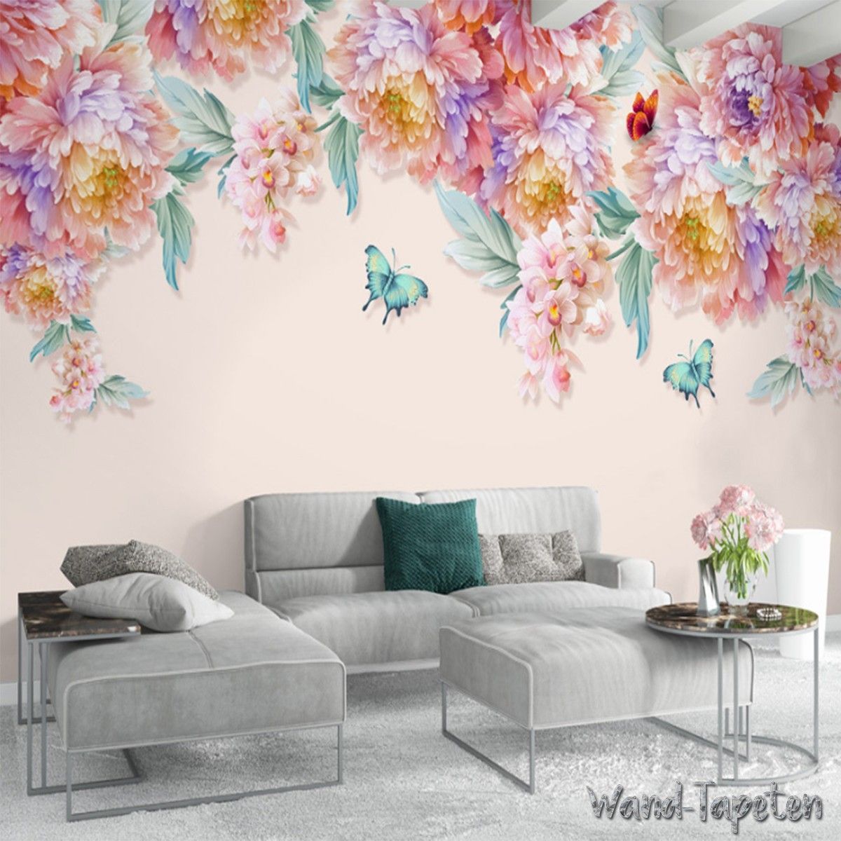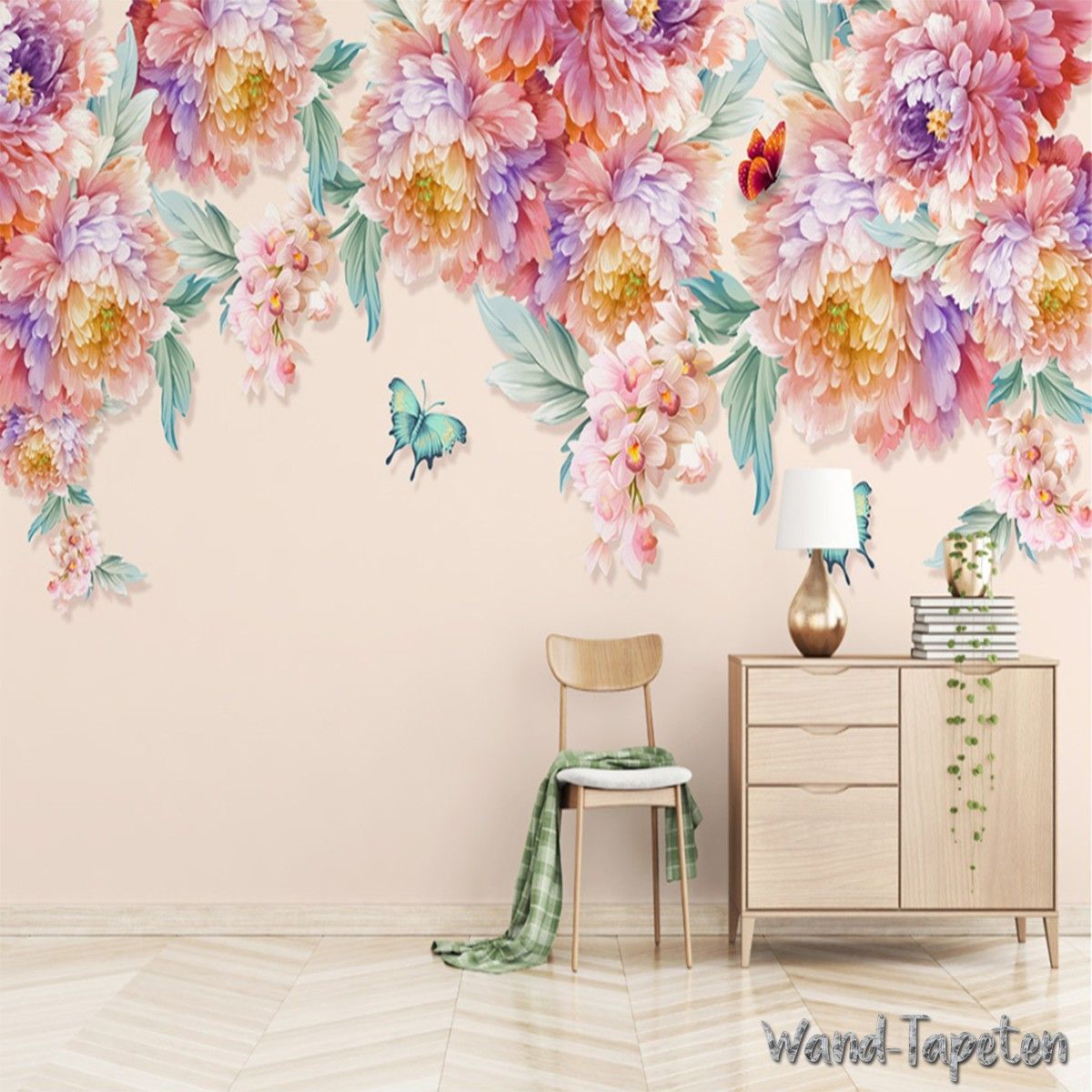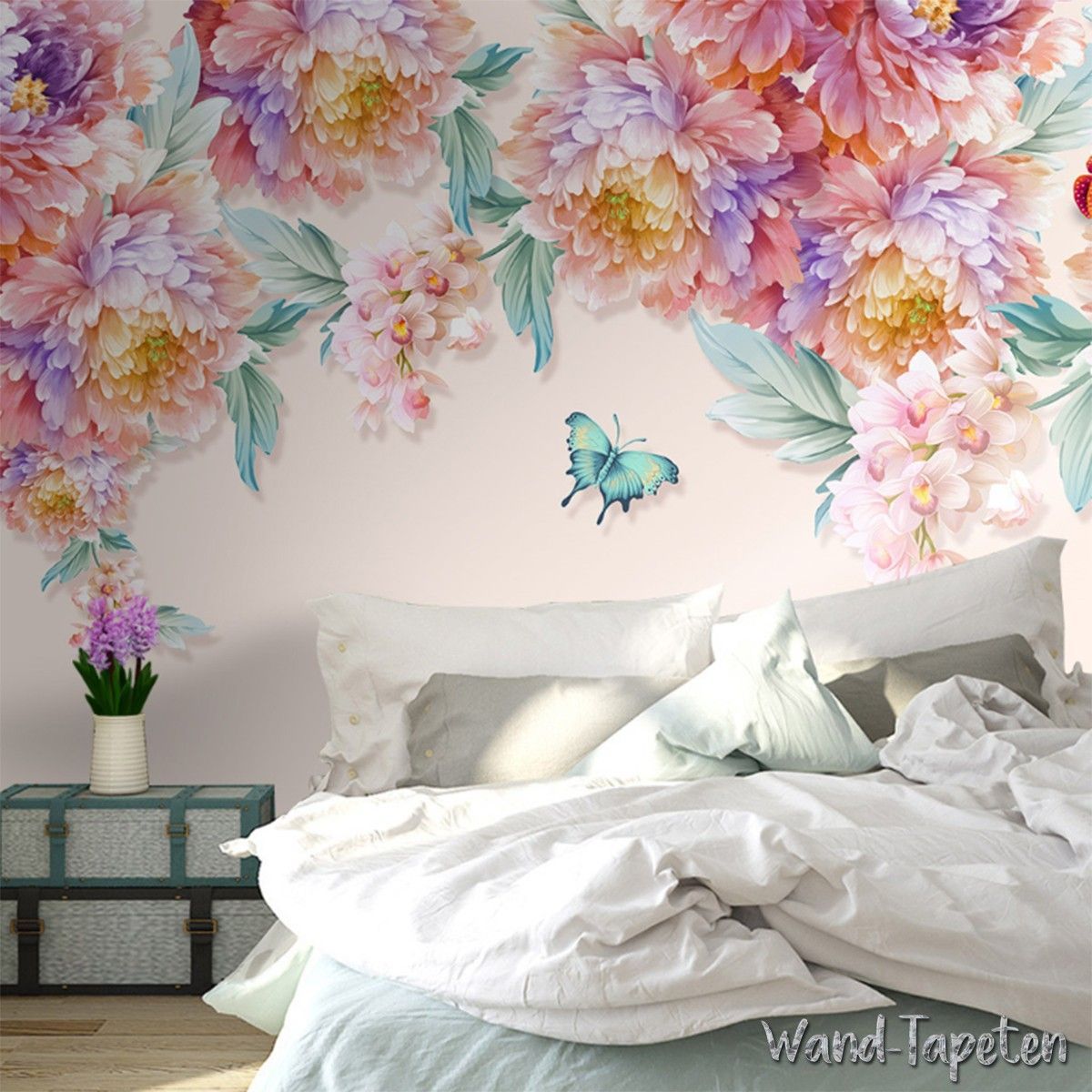 Vlies Fototapete Wandtapete Wandbilder Handgemalte Rosen Schmetterlingen 4249