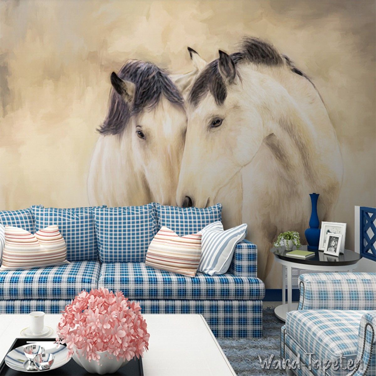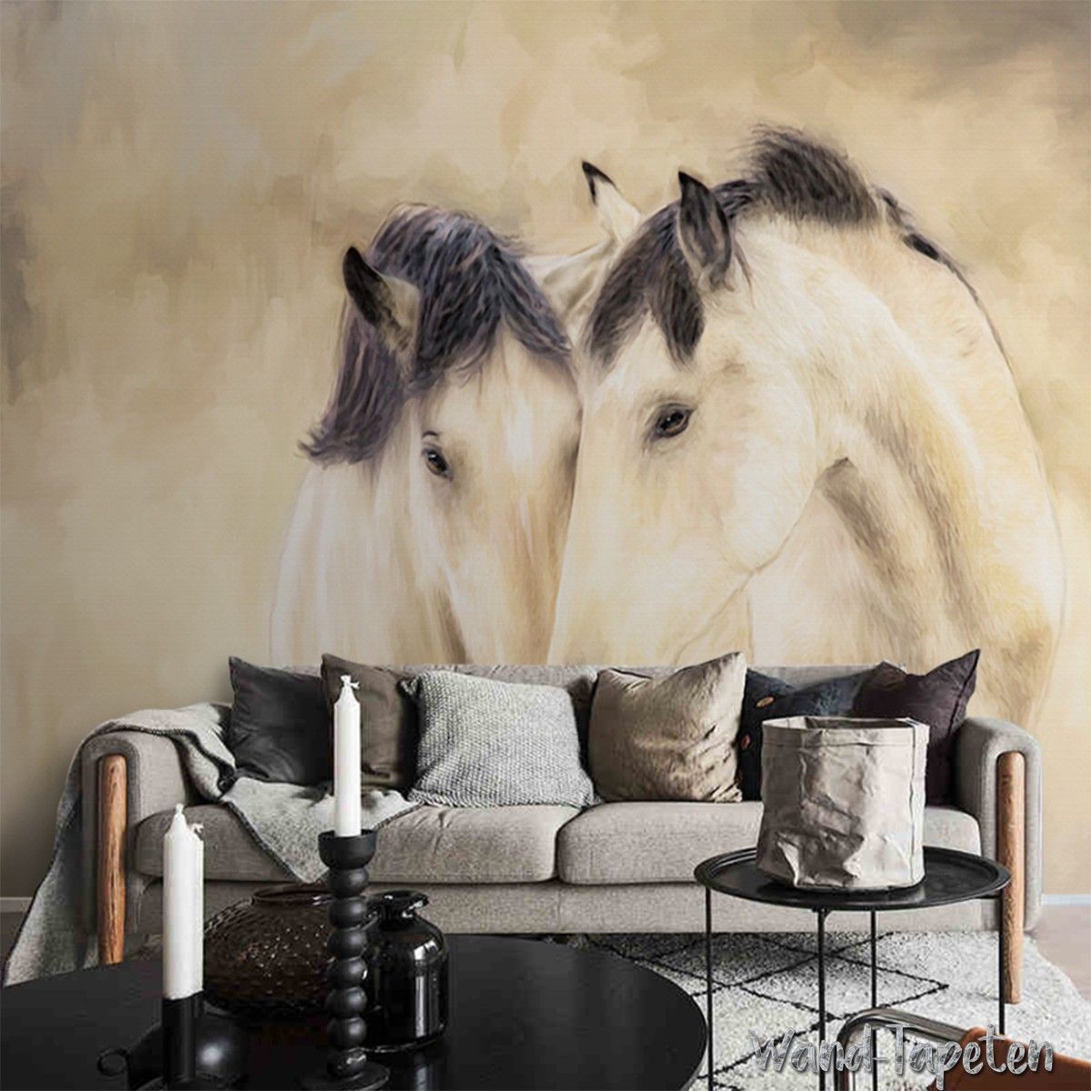 Vlies Fototapete Wandtapete Wandbilder Handgemalte Stil mit Pferdepaaren 3410