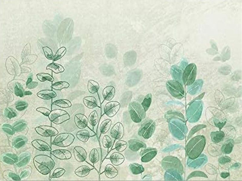 Vlies Fototapete Wandtapete Wandbilder Handgemaltes Aquarellbild Blättern 4269