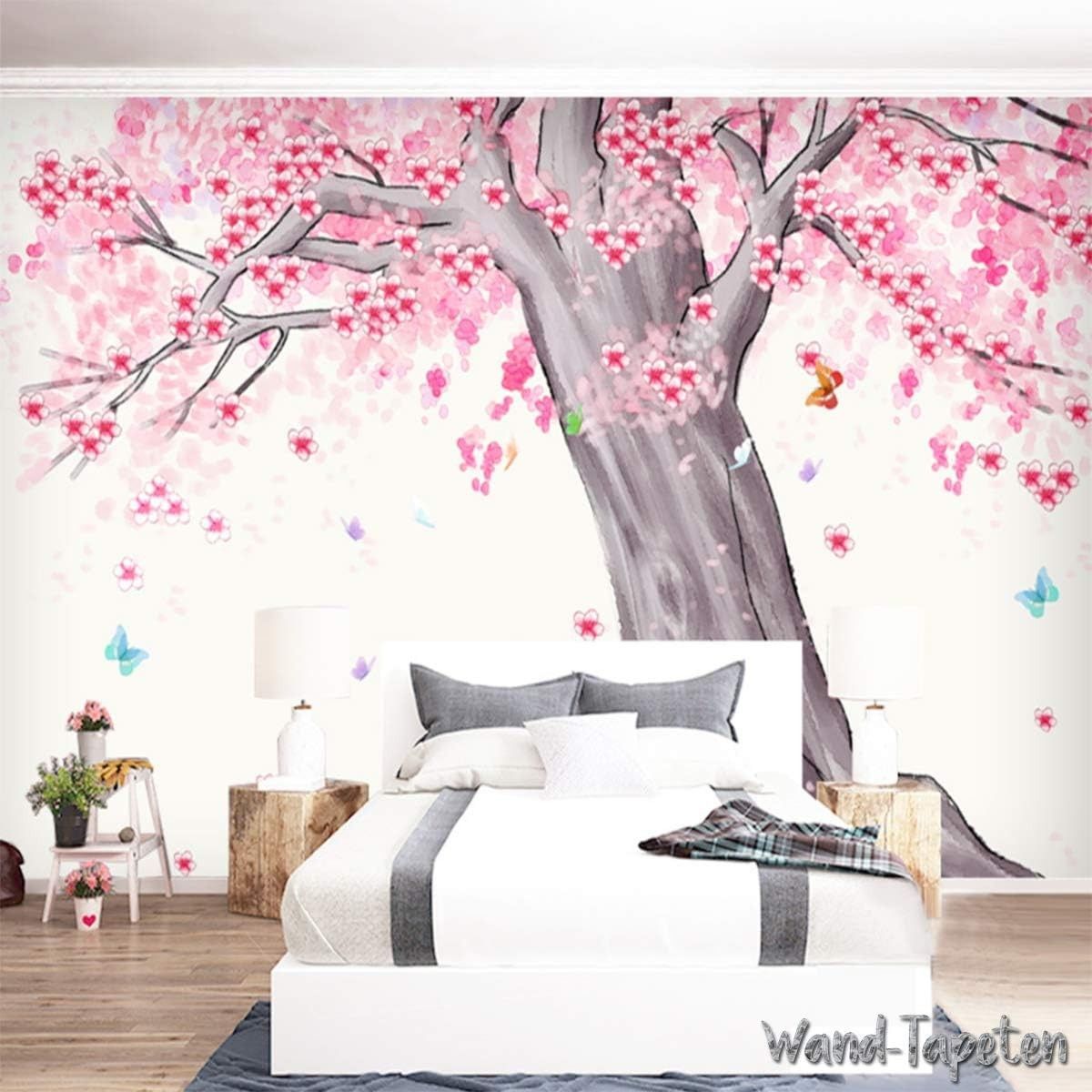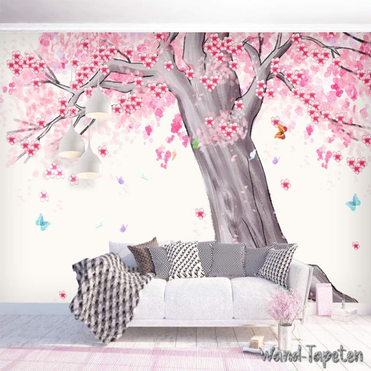 Vlies Fototapete Wandtapete Wandbilder Handgemaltes Blumen Kirschblüten 4471