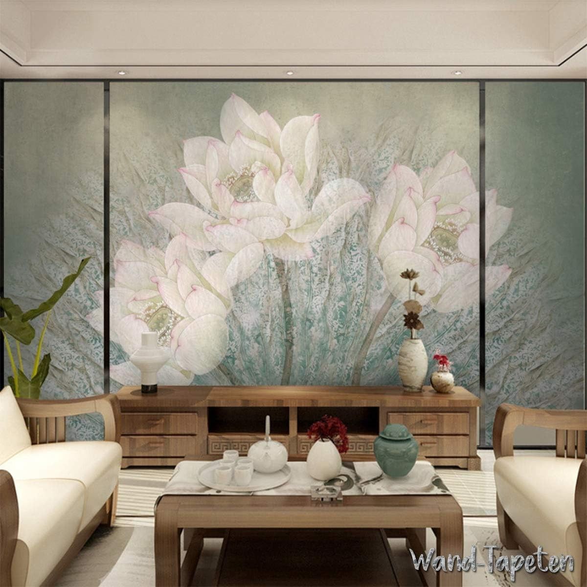 Vlies Fototapete Wandtapete Wandbilder Handgemaltes Lotusblumen Ölgemälde 4493