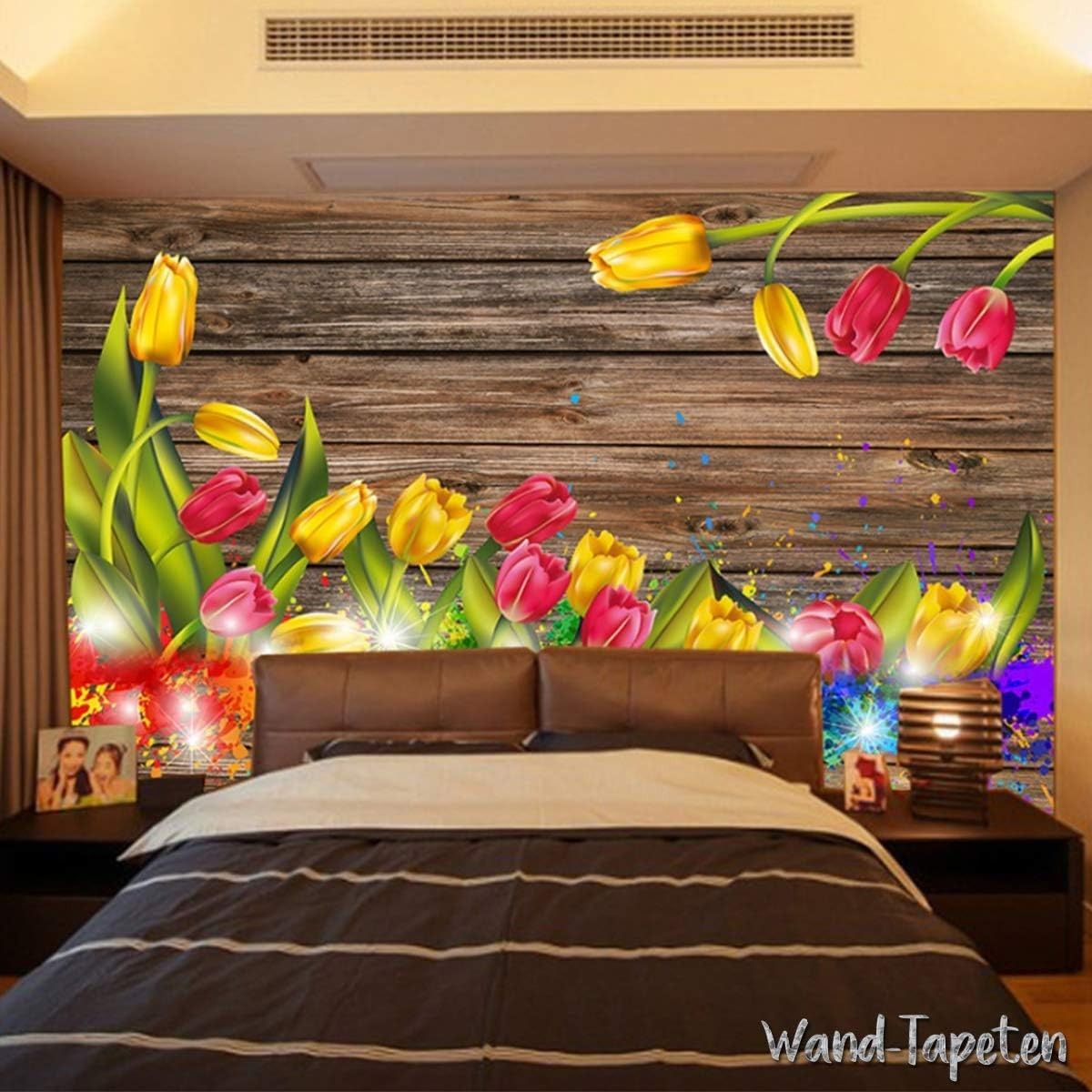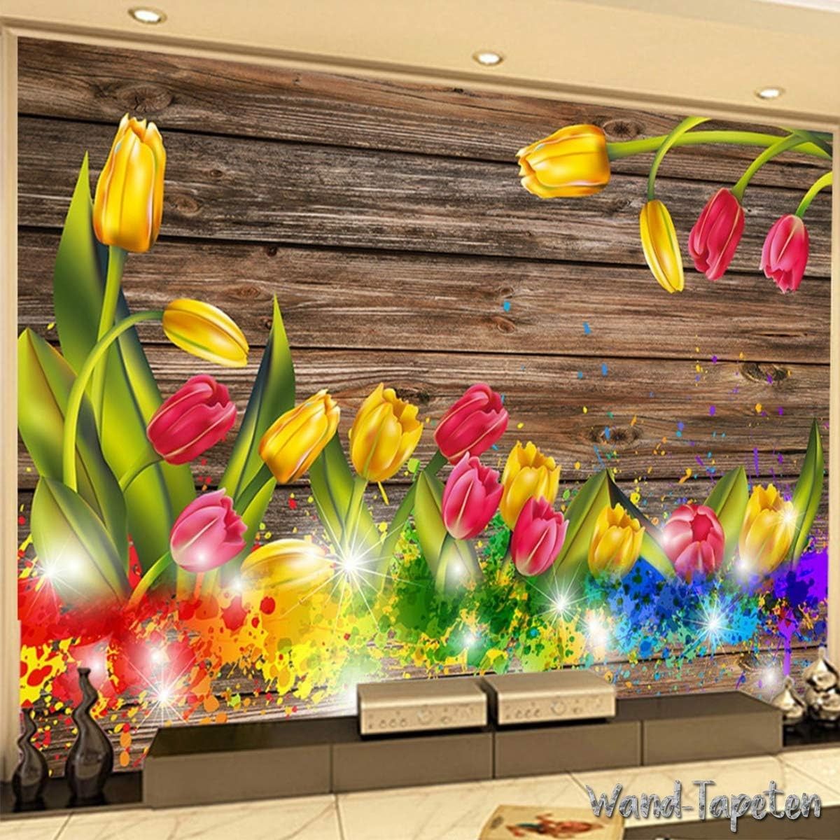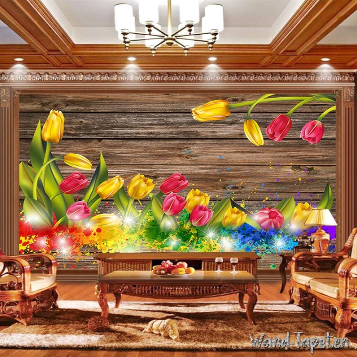 Vlies Fototapete Wandtapete Wandbilder Holz im Vintage Stil mit Tulpenmuste 4569