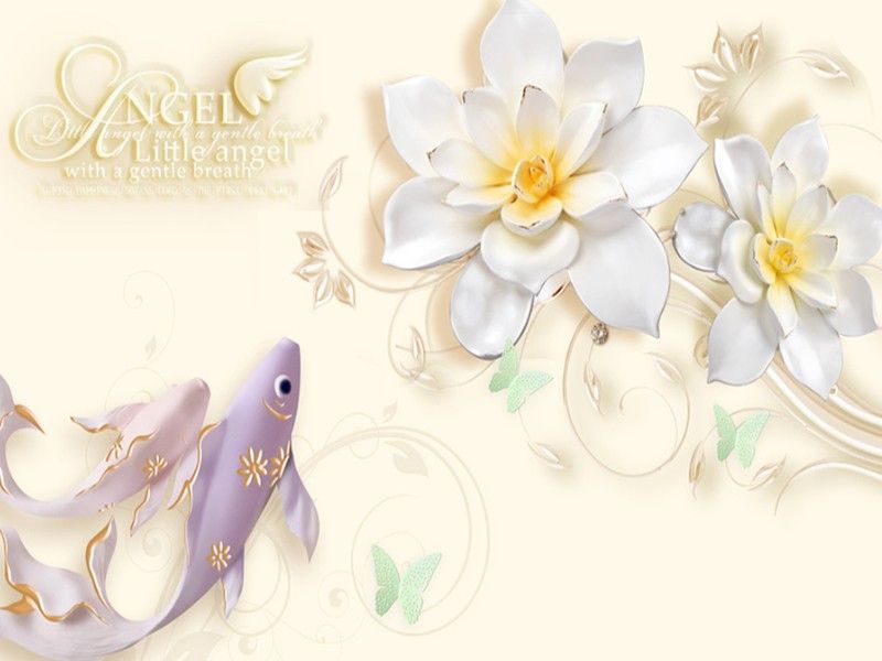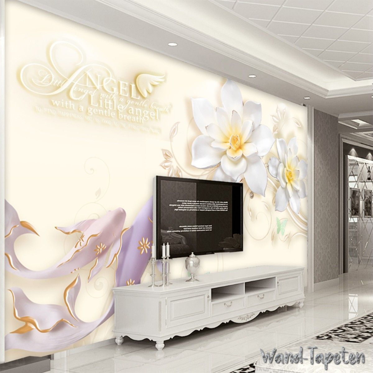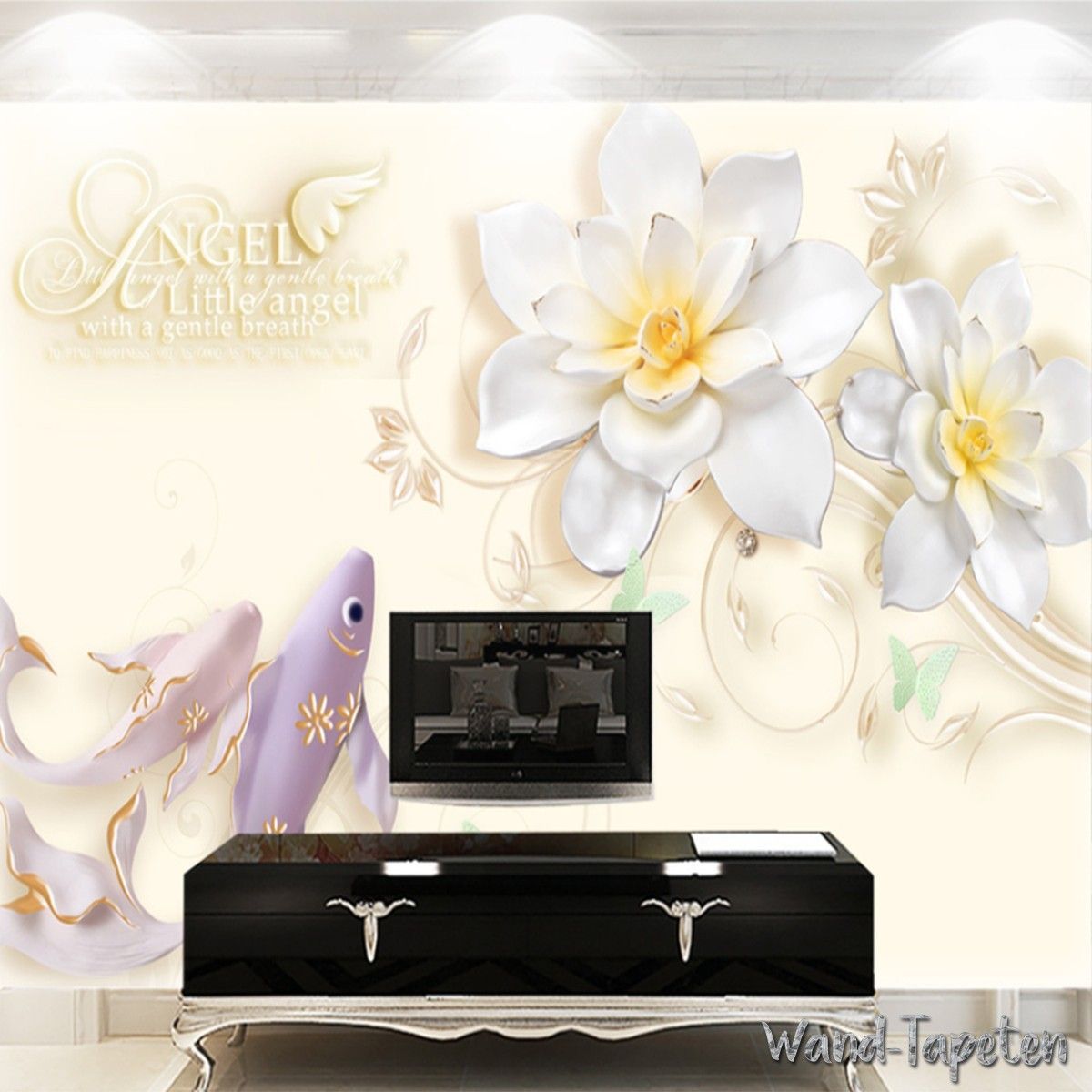 Vlies Fototapete Wandtapete Wandbilder Magnolie Lotus Goldfisch Schmetterli 4112
