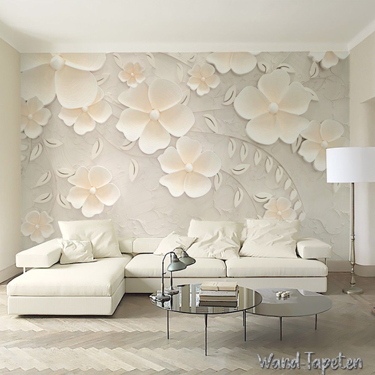 Vlies Fototapete Wandtapete Wandbilder Modernes 3D Beige Geprägte Blumen 3048