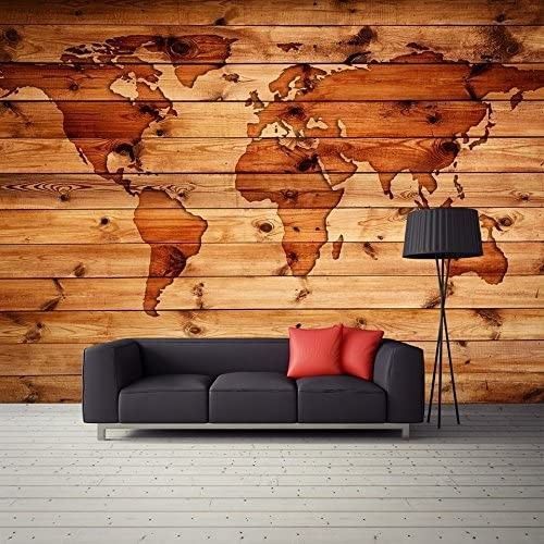 Vlies Fototapete Wandtapete Wandbilder Modernes Holz Weltkarte 1296