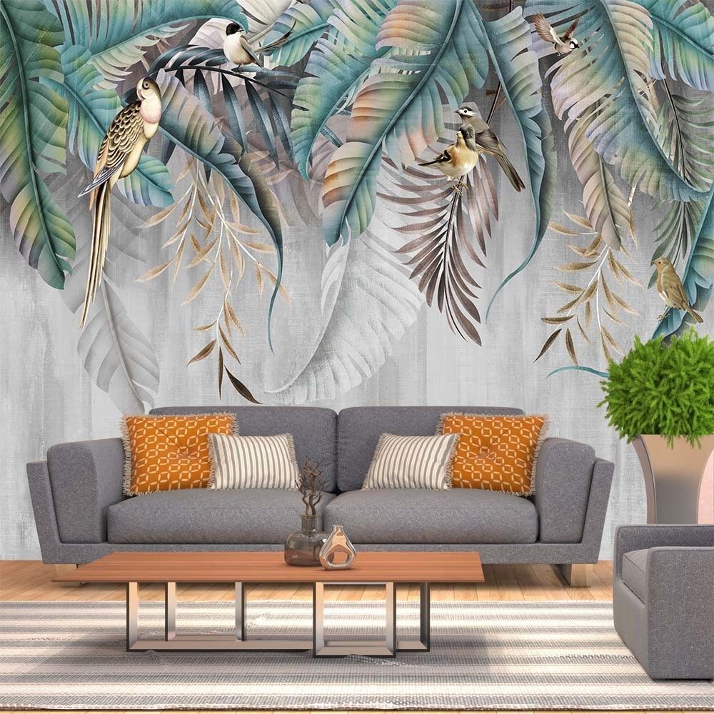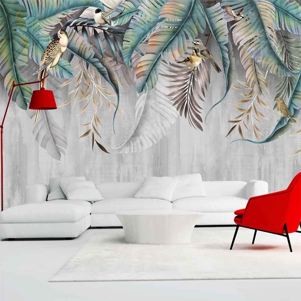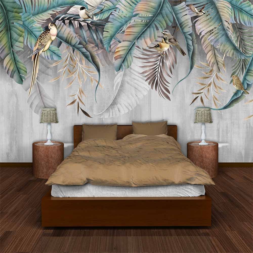 Vlies Fototapete Wandtapete Wandbilder Pflanze Hinterlässt Blumen Vögel 7553