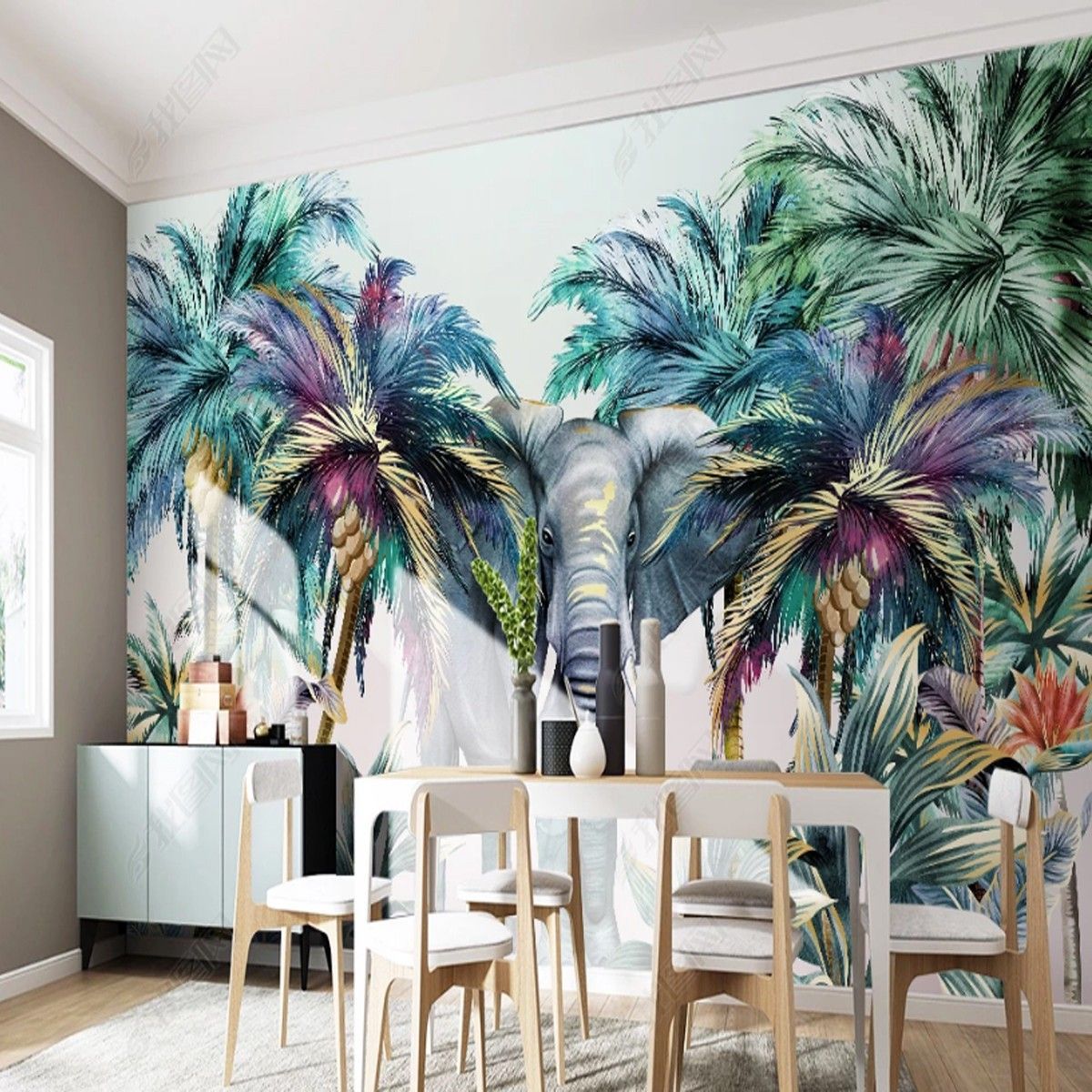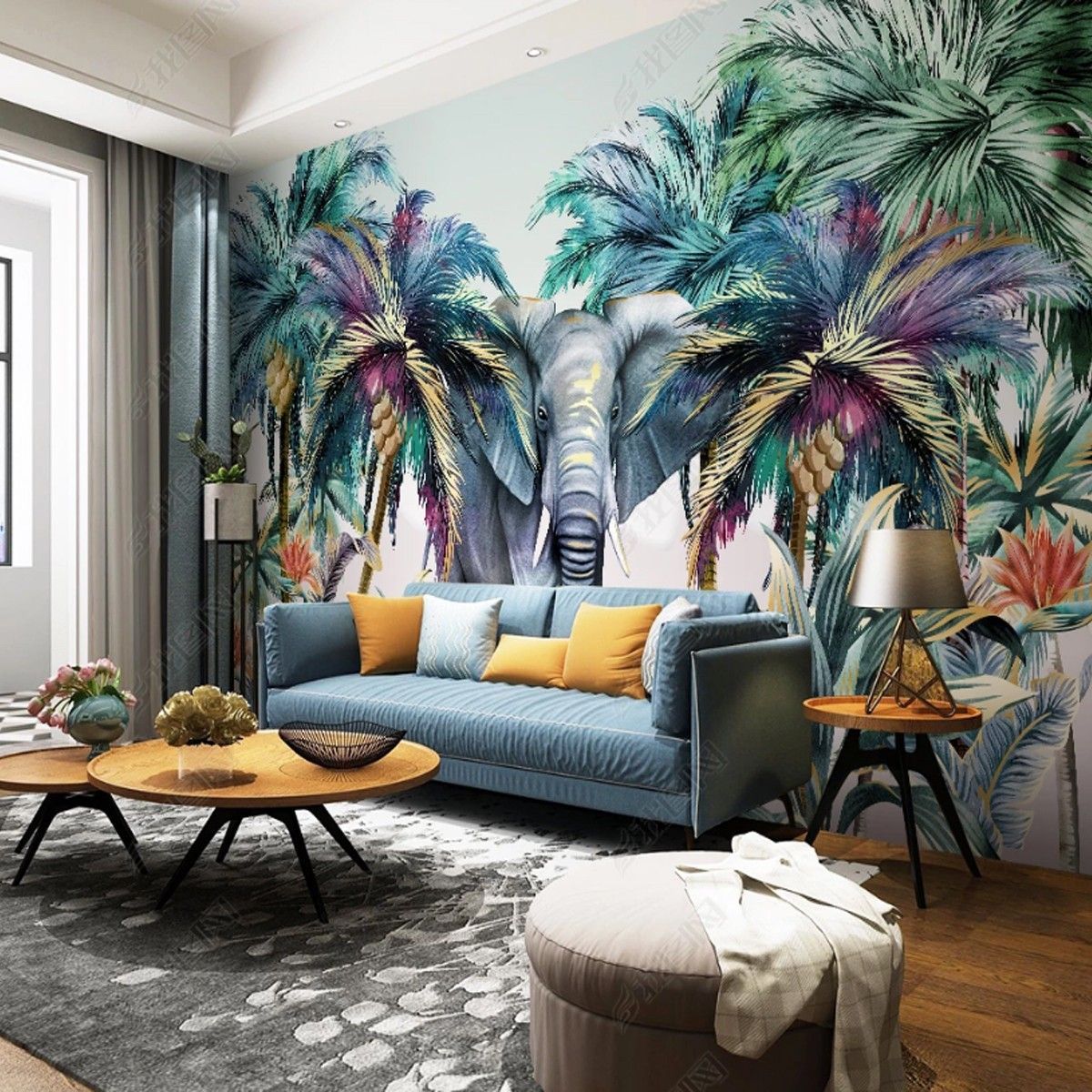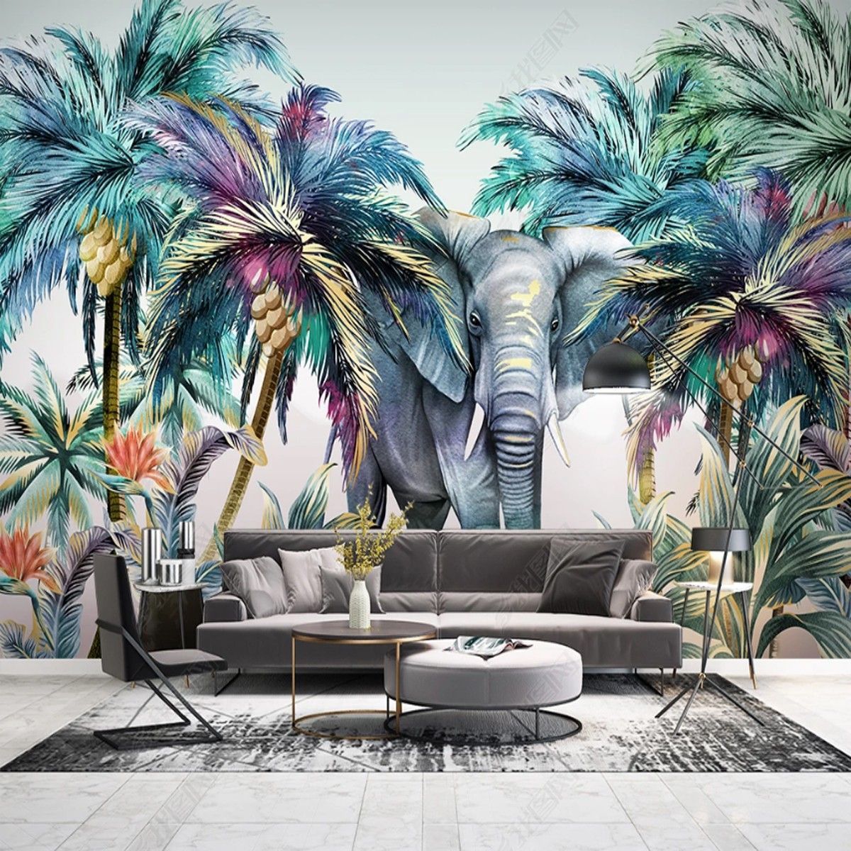 Vlies Fototapete Wandtapete Wandbilder Pflanzen Elefanten Kokospalmen 9992