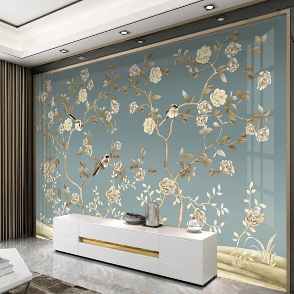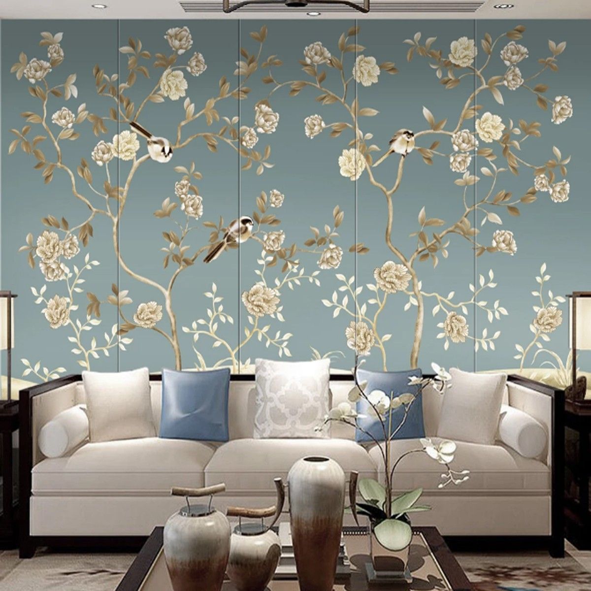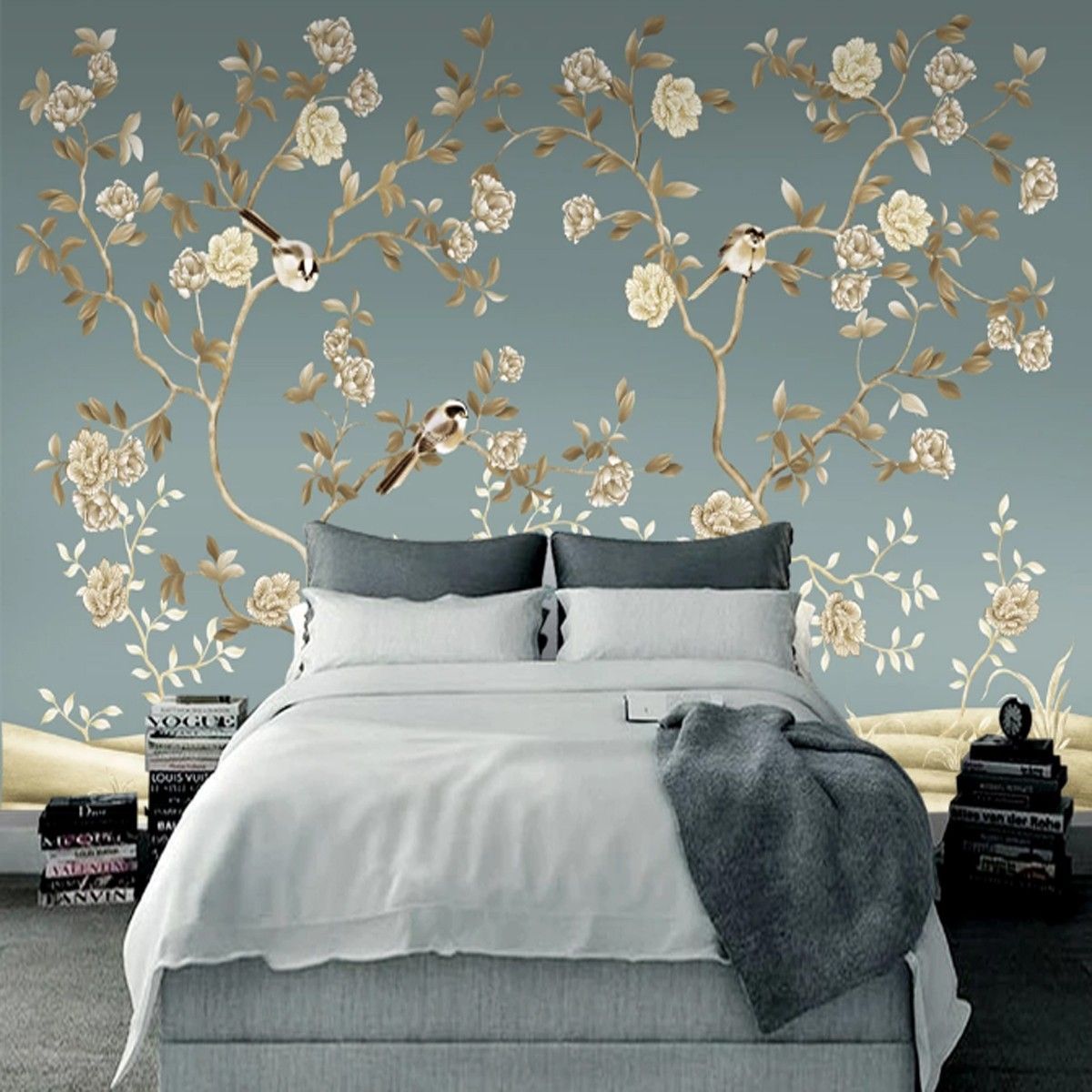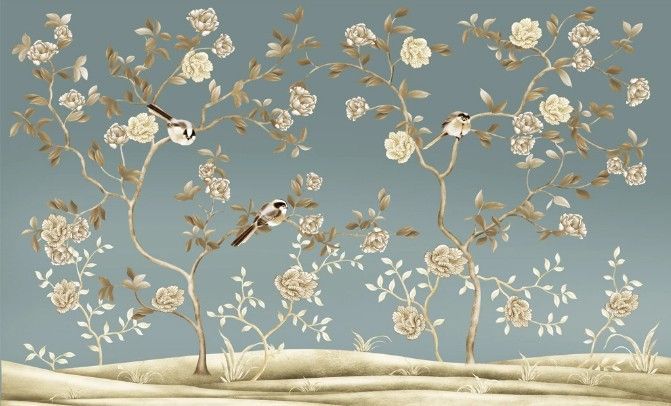 Vlies Fototapete Wandtapete Wandbilder Retro Blumen und Vogelkunst 9917