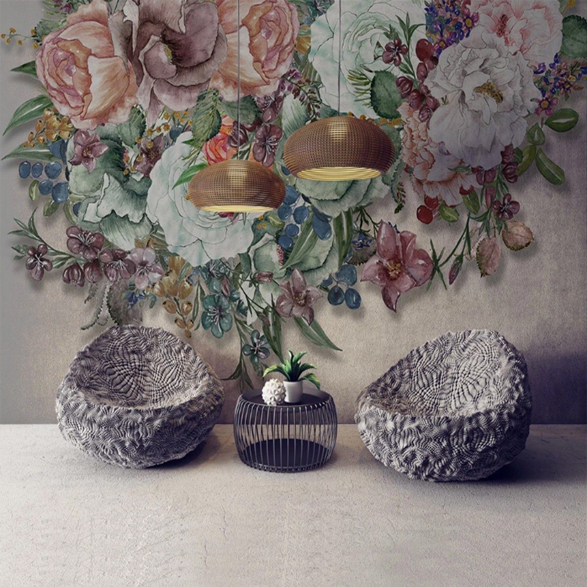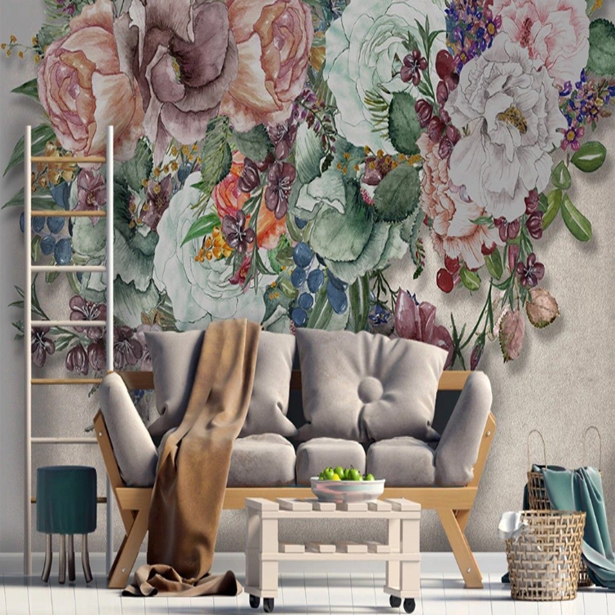 Vlies Fototapete Wandtapete Wandbilder Retro Nostalgie Handbemalte Blumen 9945