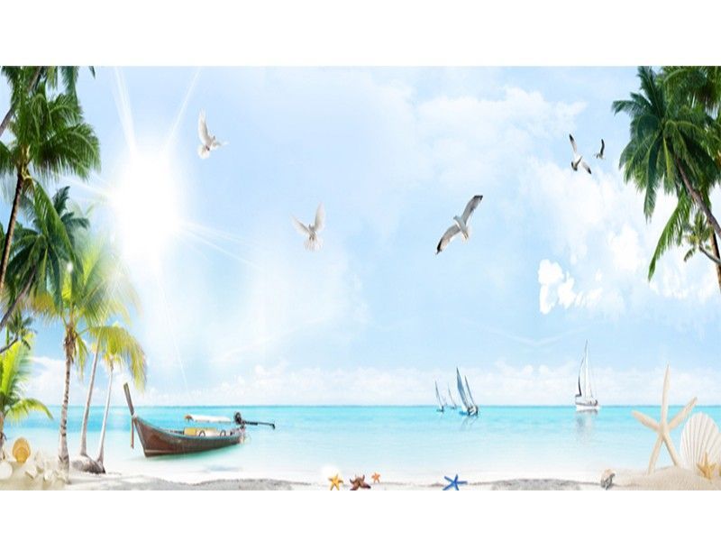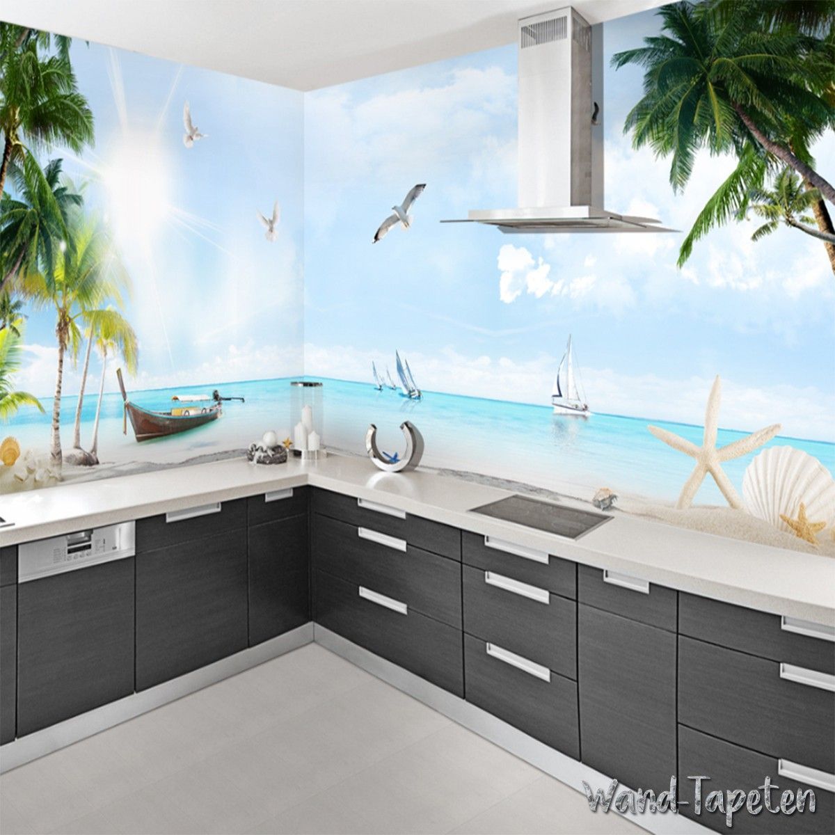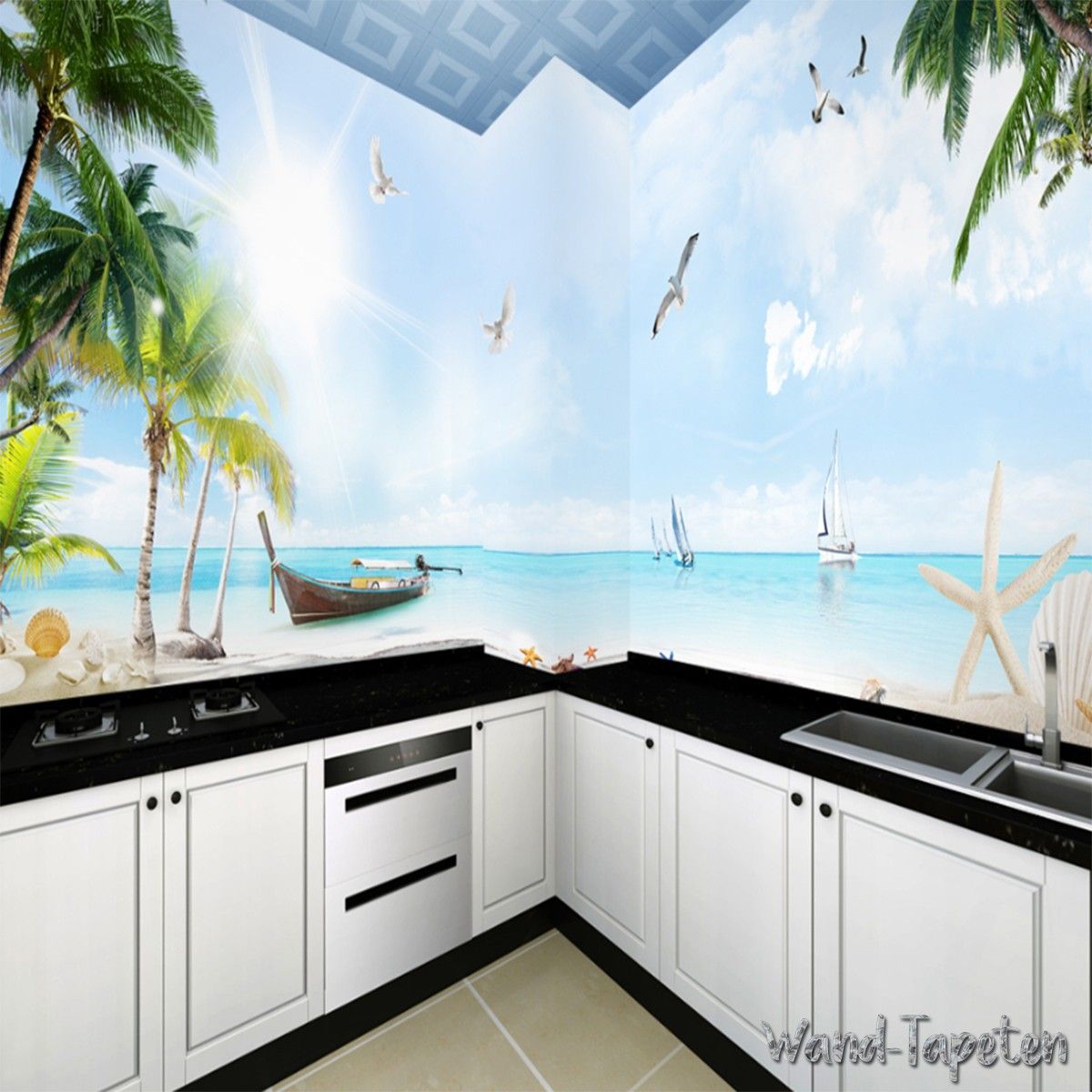 Vlies Fototapete Wandtapete Wandbilder Sandstrand Kokospalmen und Meeres 4191