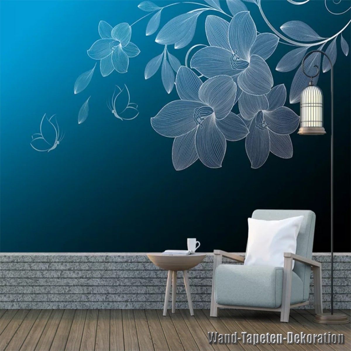 Vlies Fototapete Wandtapete Wandbilder Schönen Blumen und Schmetterlingen 9110