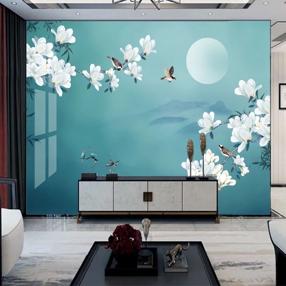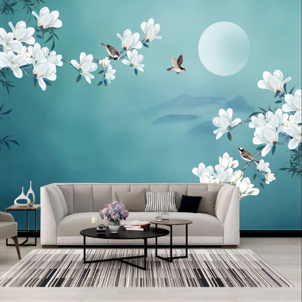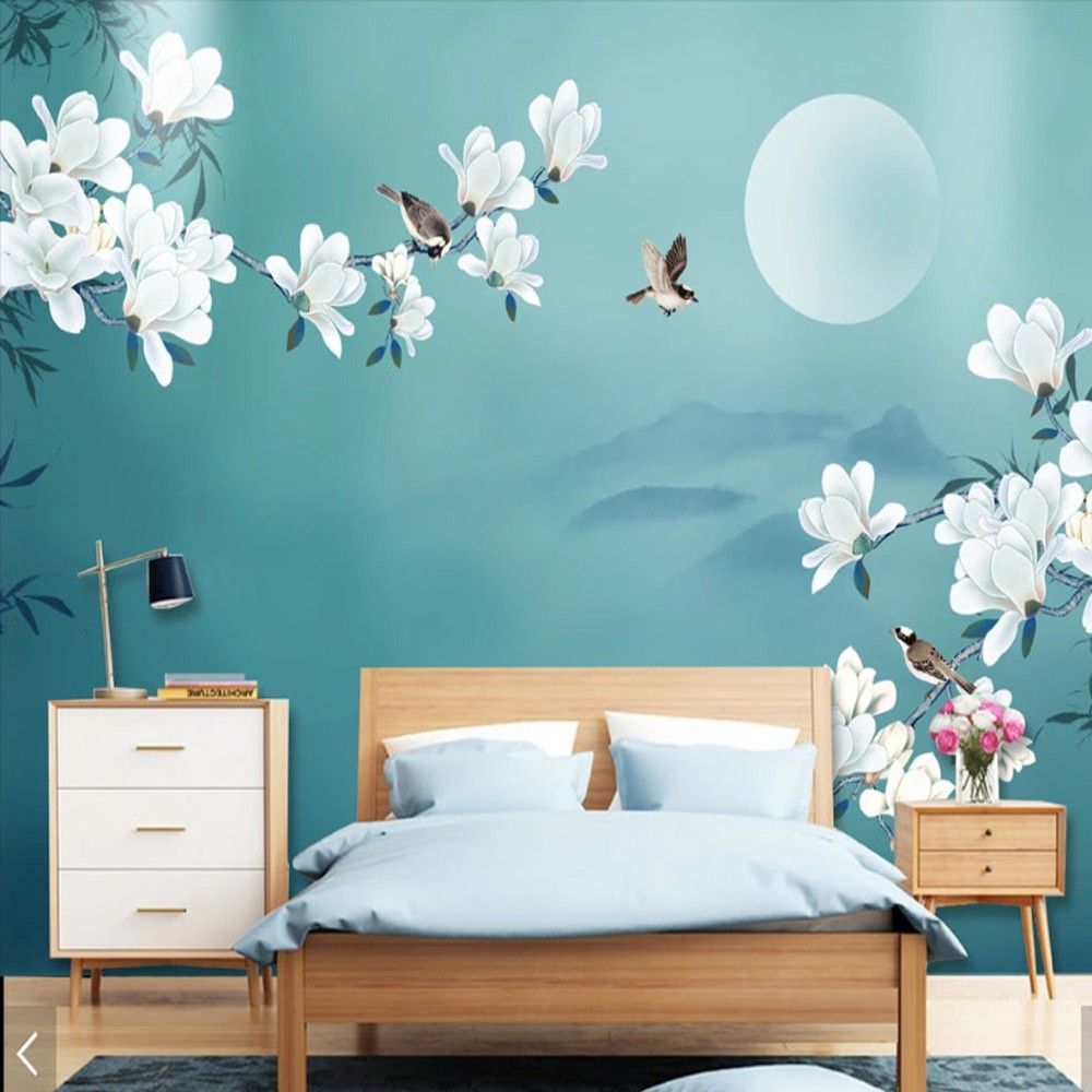 Vlies Fototapete Wandtapete Wandbilder Schönheit Magnolien Vögel 2818