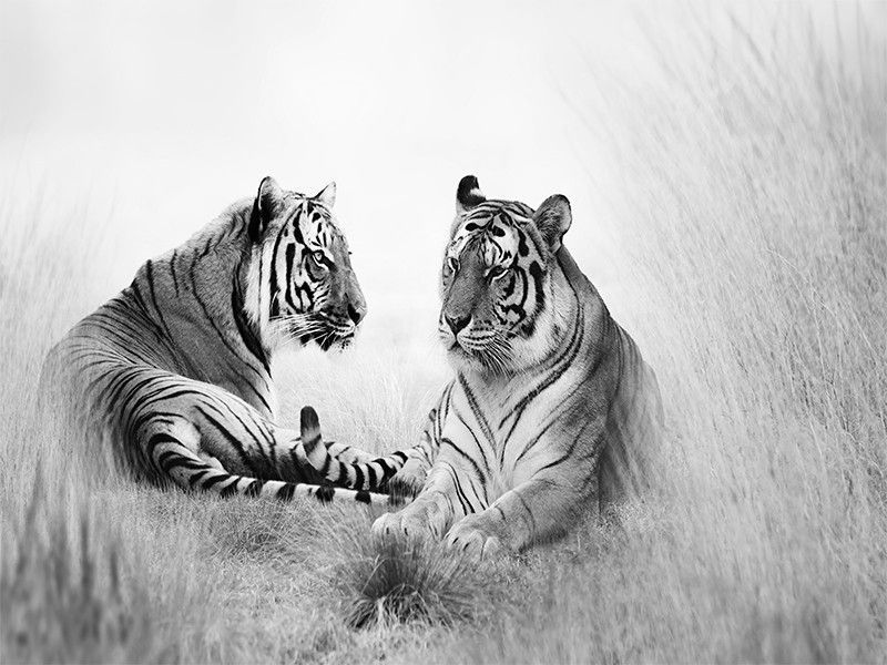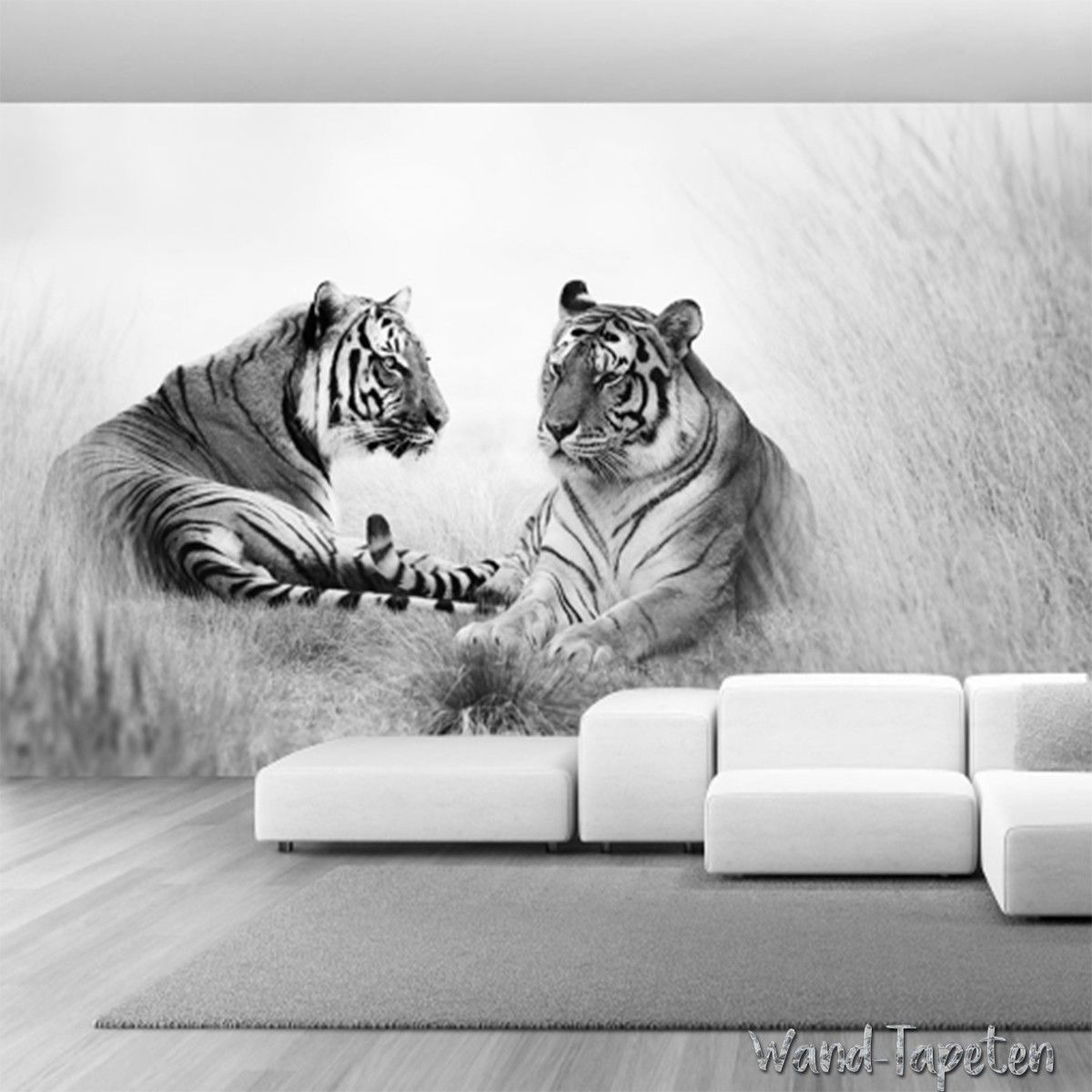 Vlies Fototapete Wandtapete Wandbilder Schwarz Weiße Tiger 2282