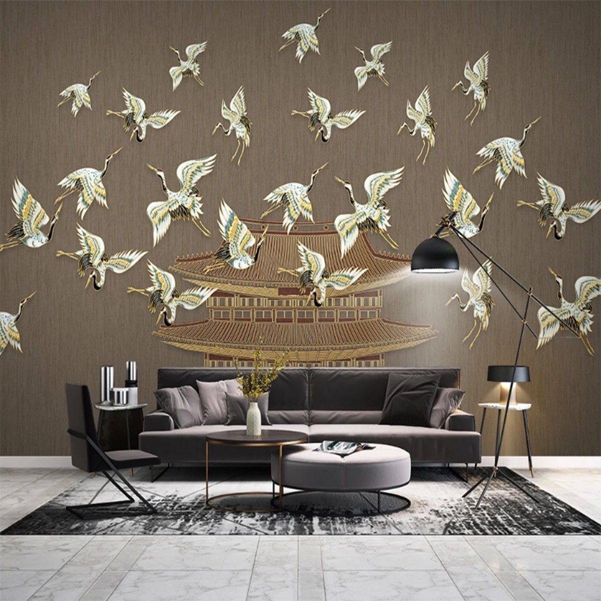 Vlies Fototapete Wandtapete Wandbilder Stil Goldener Relieflinie Baukran 10054