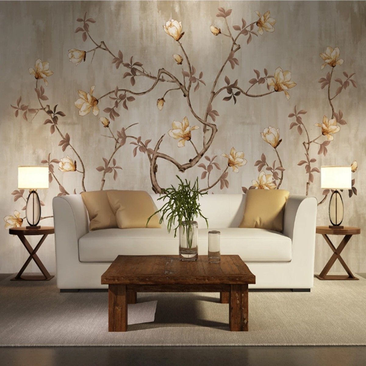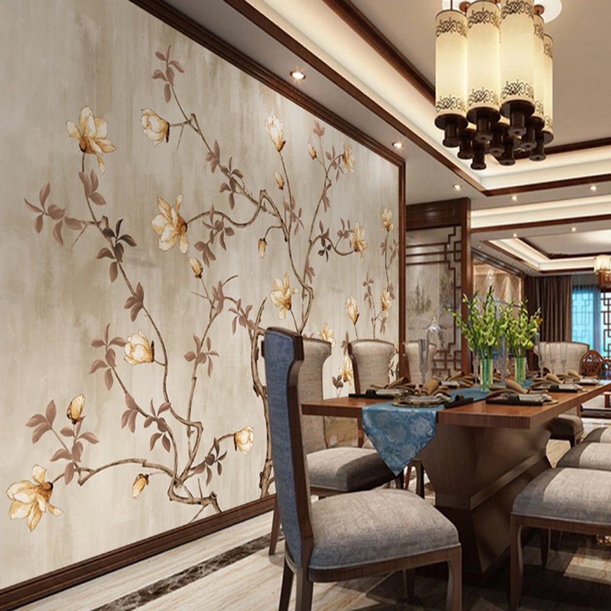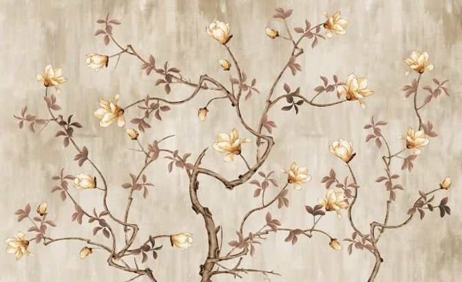 Vlies Fototapete Wandtapete Wandbilder Stil mit Hellen Blumen und Vögeln 9923
