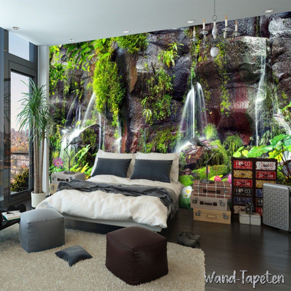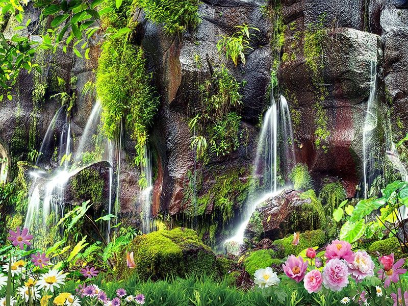 Vlies Fototapete Wandtapete Wandbilder Wasserfall in Gartenlandschaft 4138