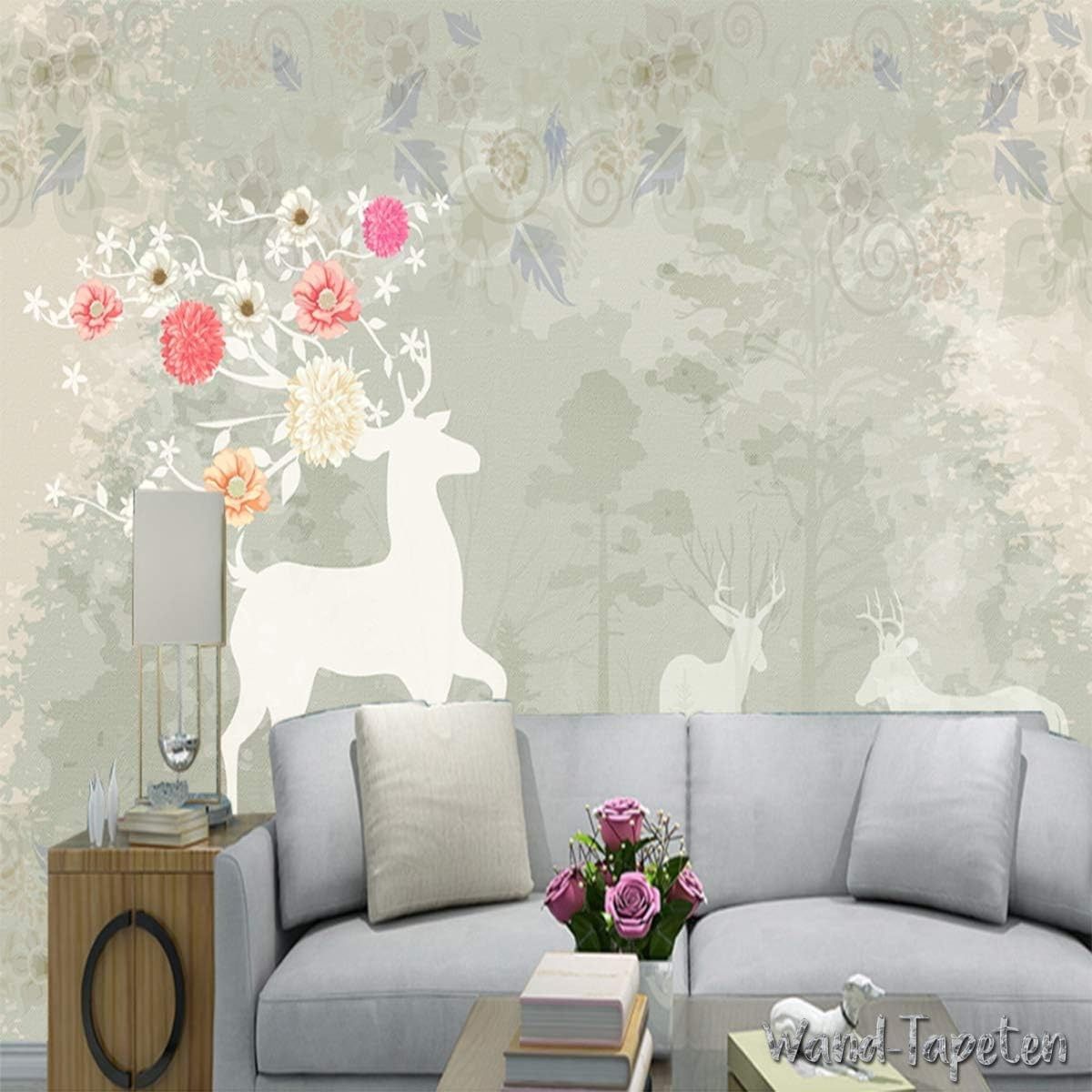 Vlies Fototapete Wandtapete Wandbilder Wunderschöne Hirsch Blume 4468