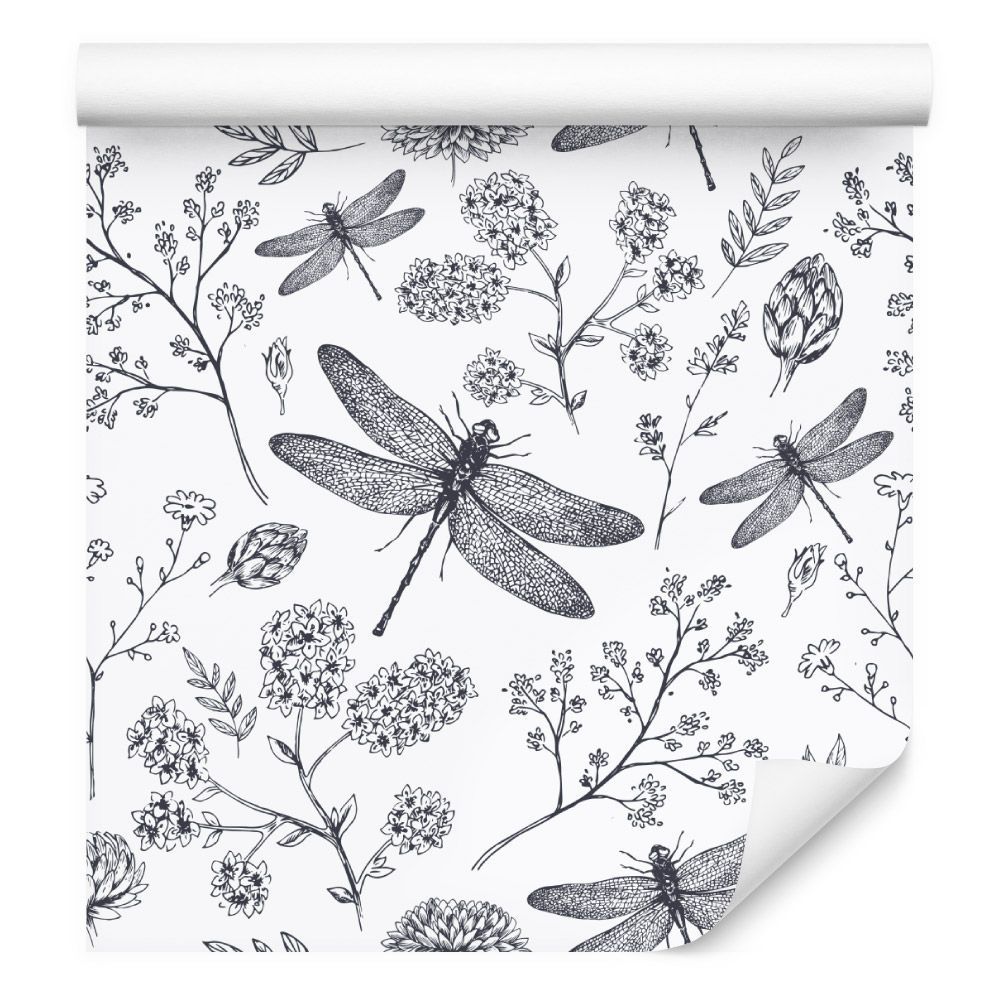 VLIES TAPETE Designtapete Blumen Blaetter Knospen Pflanzen Natur Libellen XXL 2956