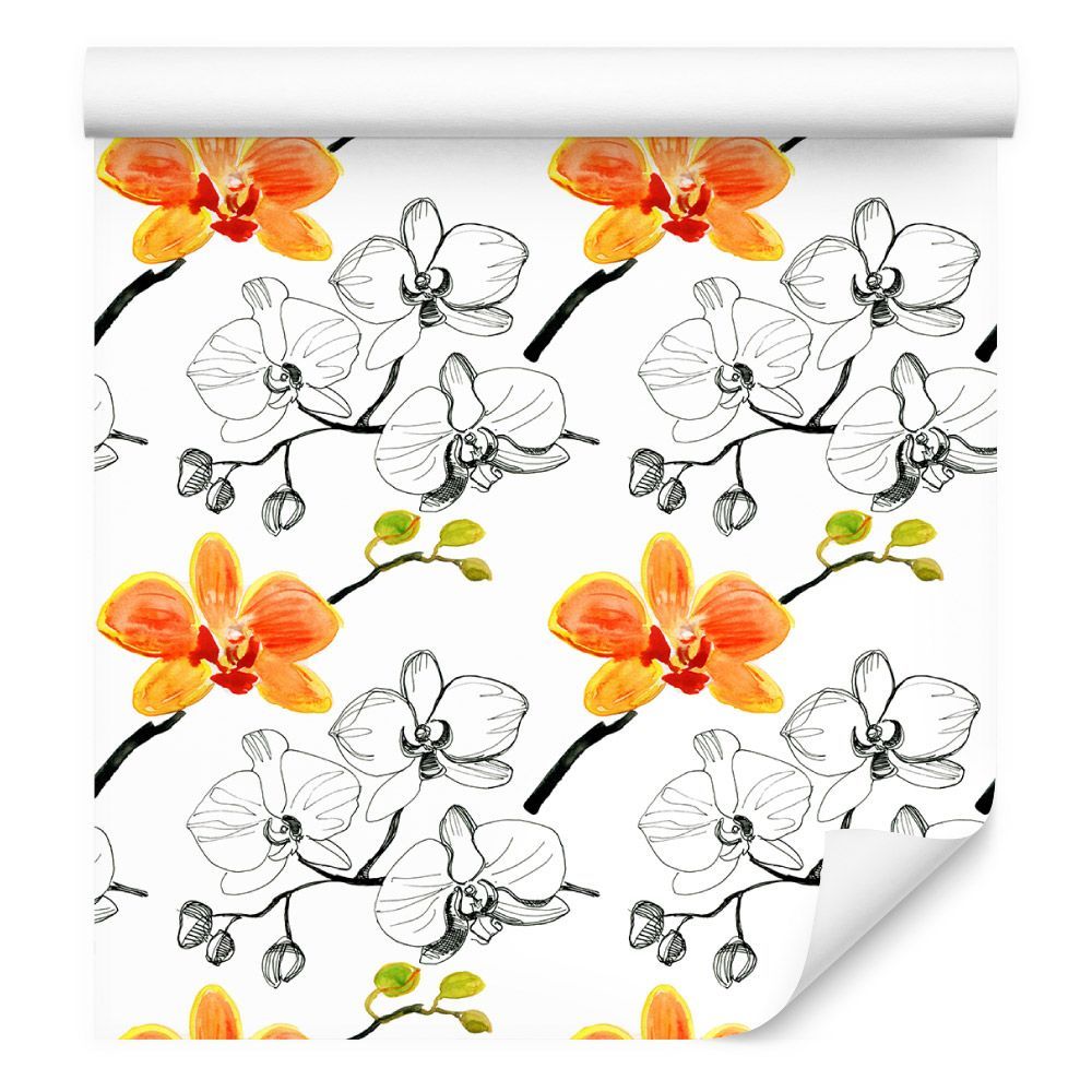 VLIES TAPETE Designtapete Blumen Knabenkraut Aquarell Knospen Pflanzen XXL 2727