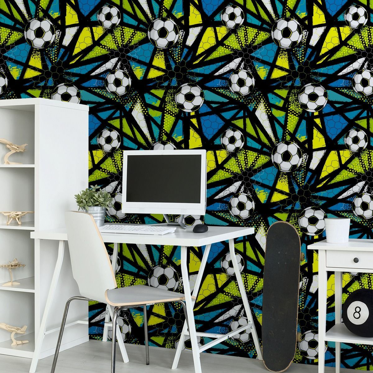 VLIES TAPETE Designtapete Jugend Geometrisch Fußball Sport 6156