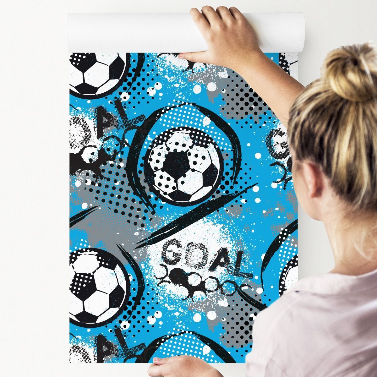10m VLIES TAPETE Rolle Jungen Fußball Aufschriften Sport Muster XXL 4317