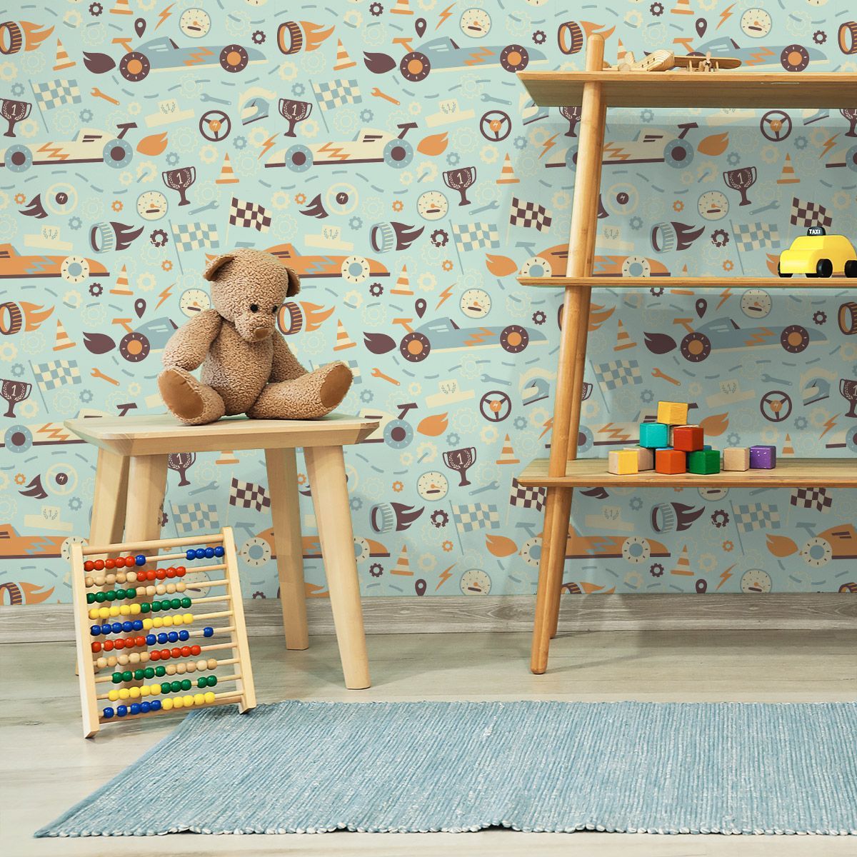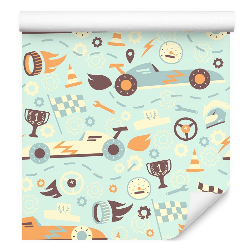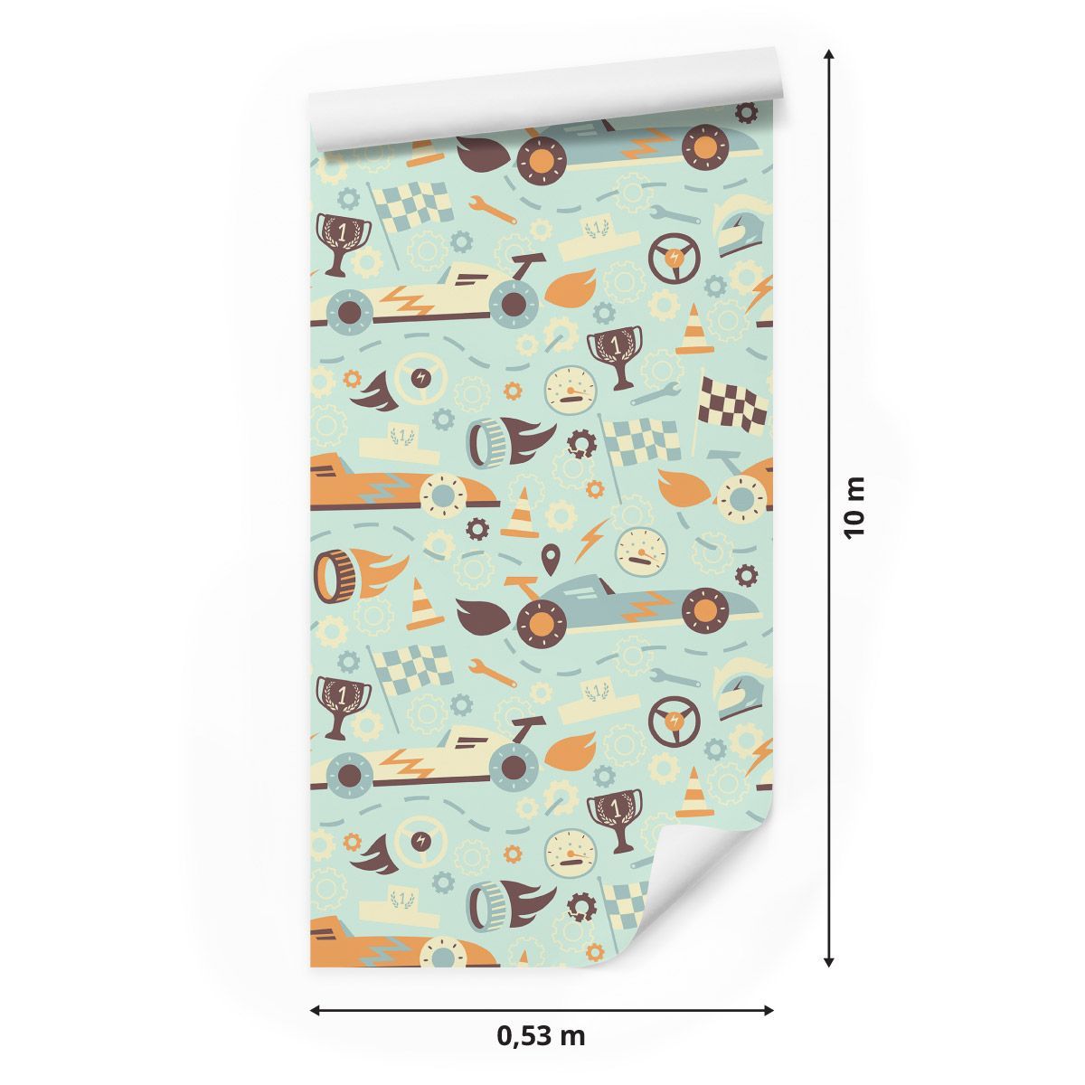 10m VLIES TAPETE Rolle Kinderzimmer Autos Sportwagen Schrauben Blitze XXL 3321