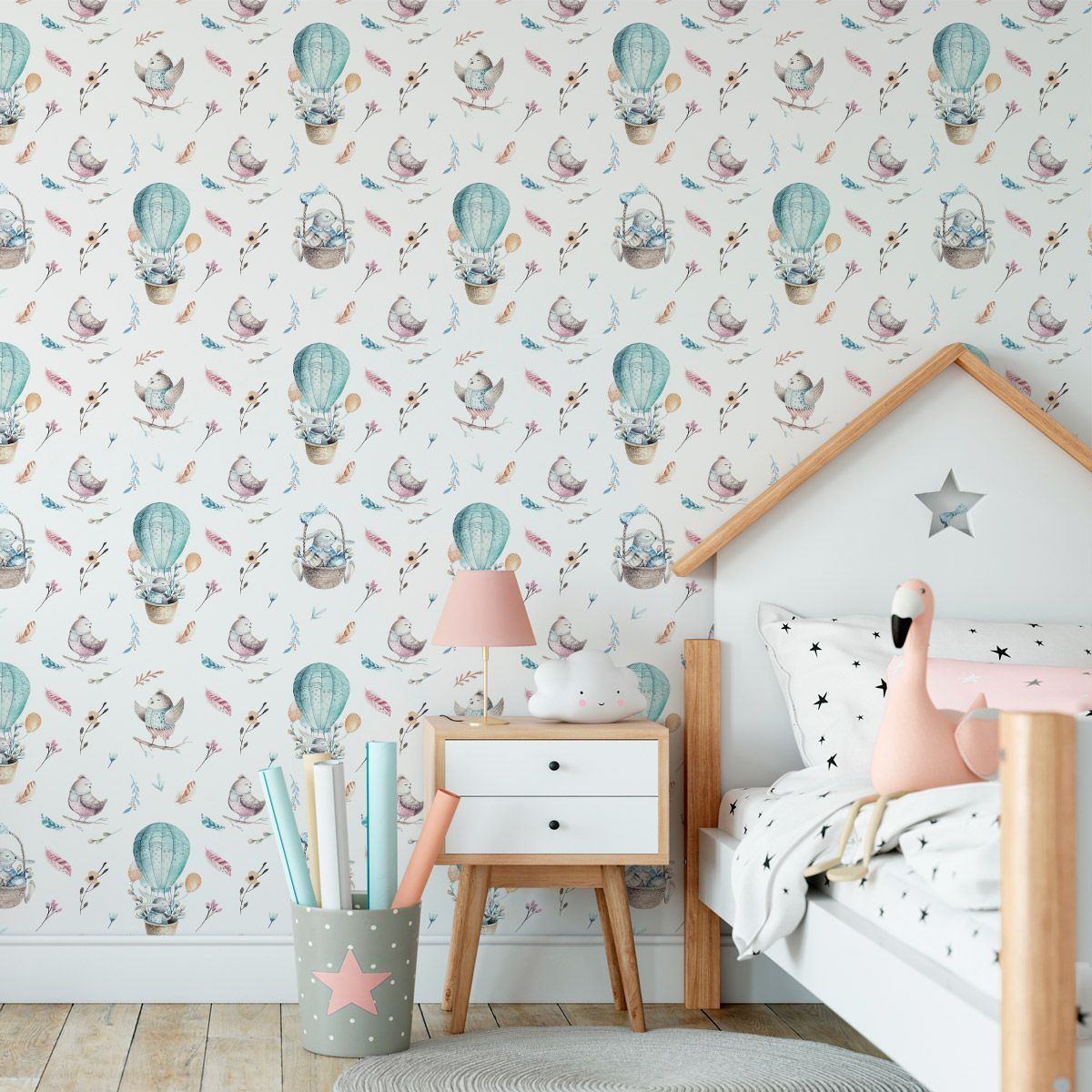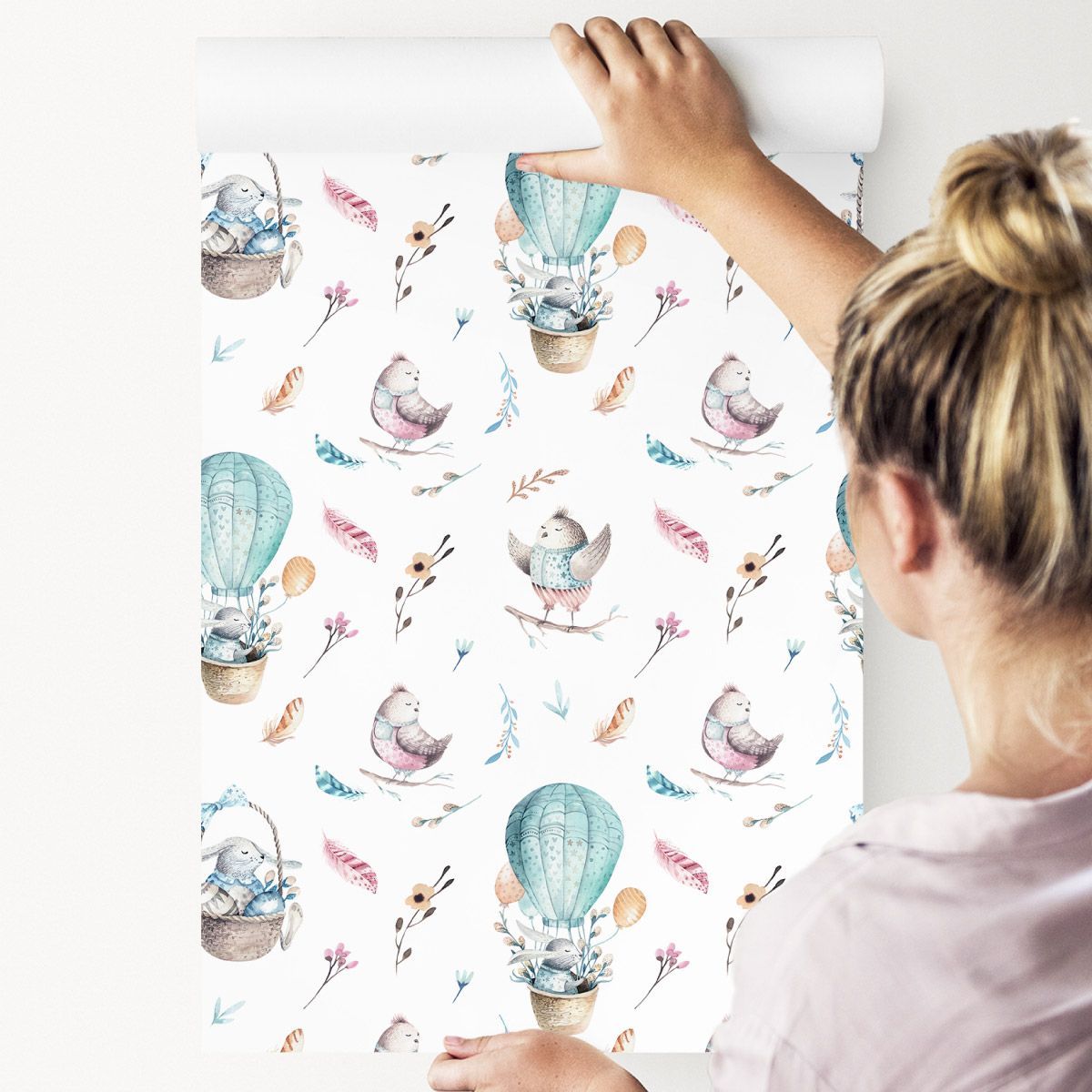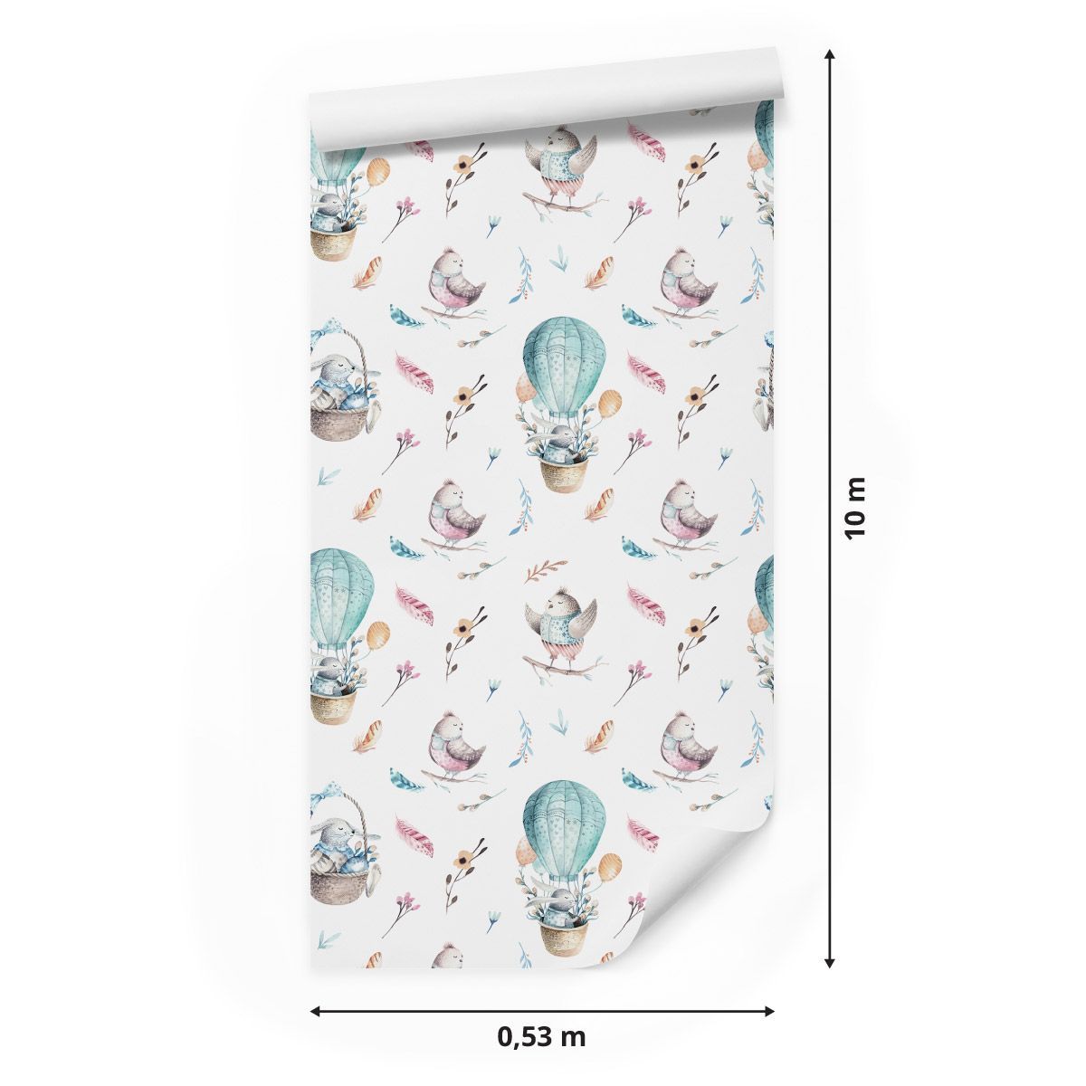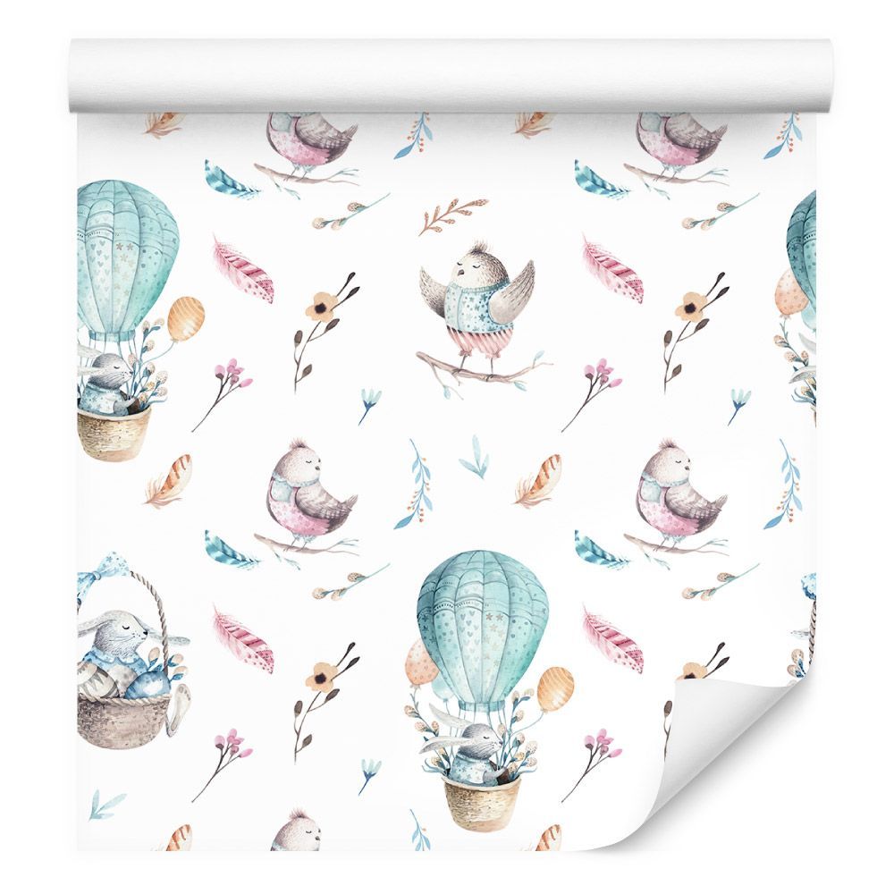 10m VLIES TAPETE Rolle Kinderzimmer Ballons Kaninchen Vögel Natur XXL 3390