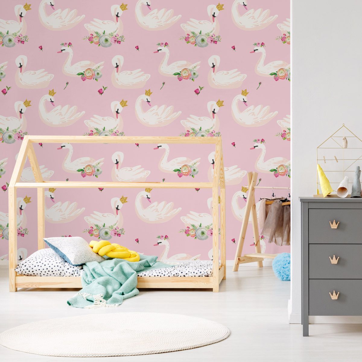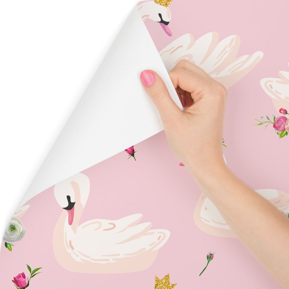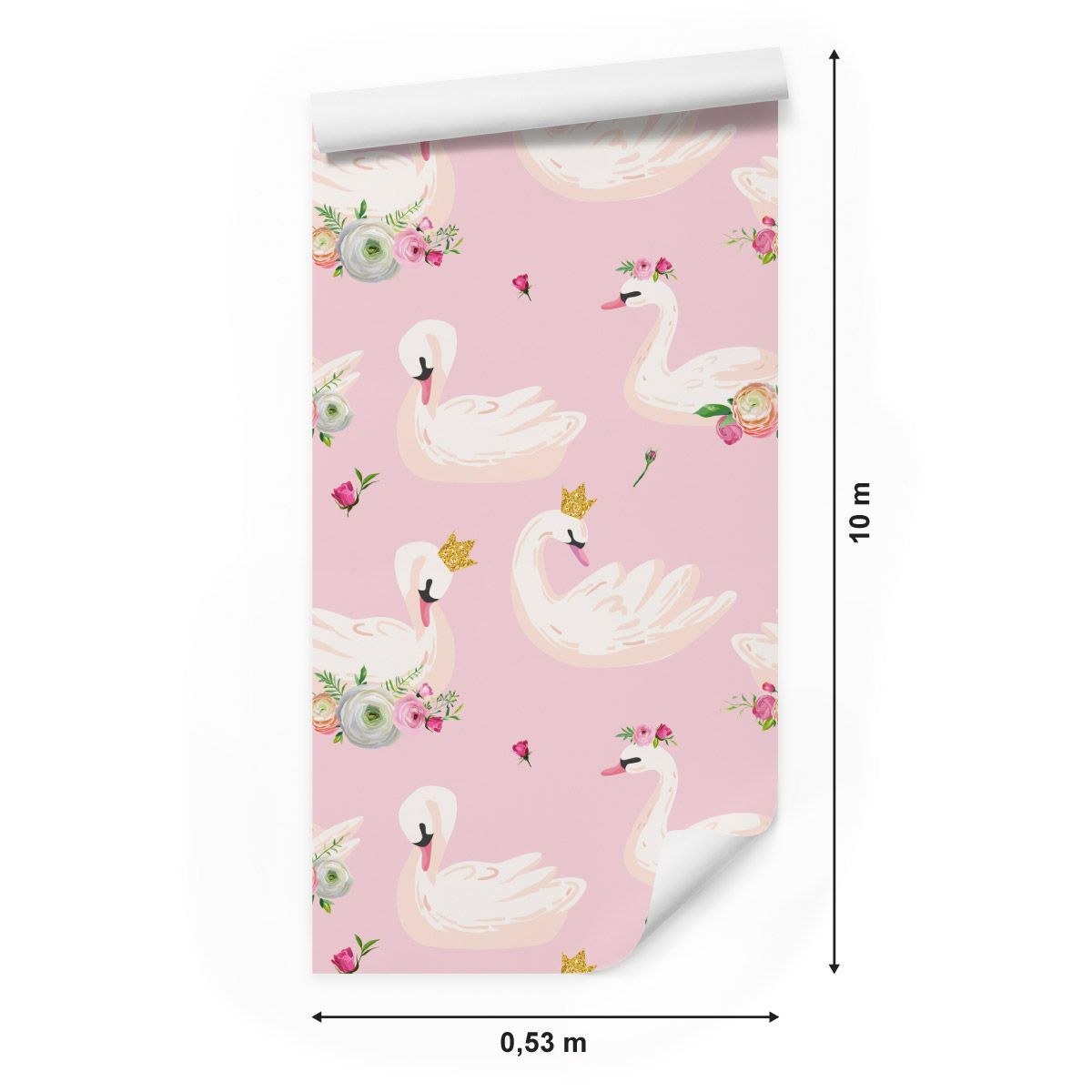 10m VLIES TAPETE Rolle Kinderzimmer Blumen Rosen Schwäne Kronen XXL 1853