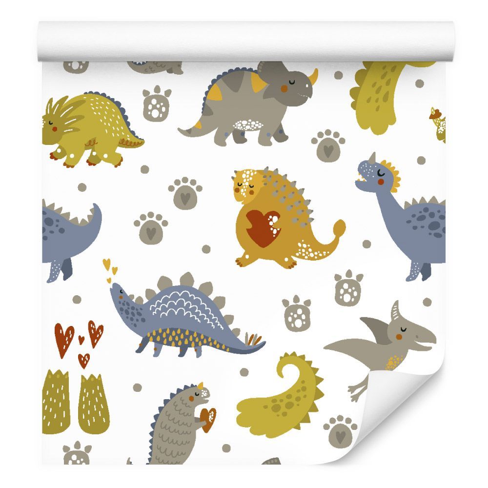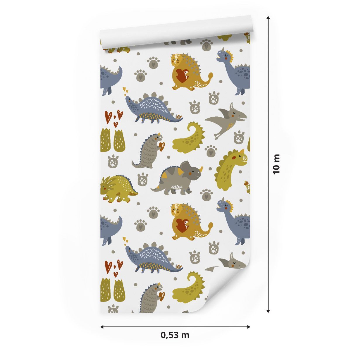 10m VLIES TAPETE Rolle Kinderzimmer Dinosaurier Vögel Herzen Bunt XXL 3368