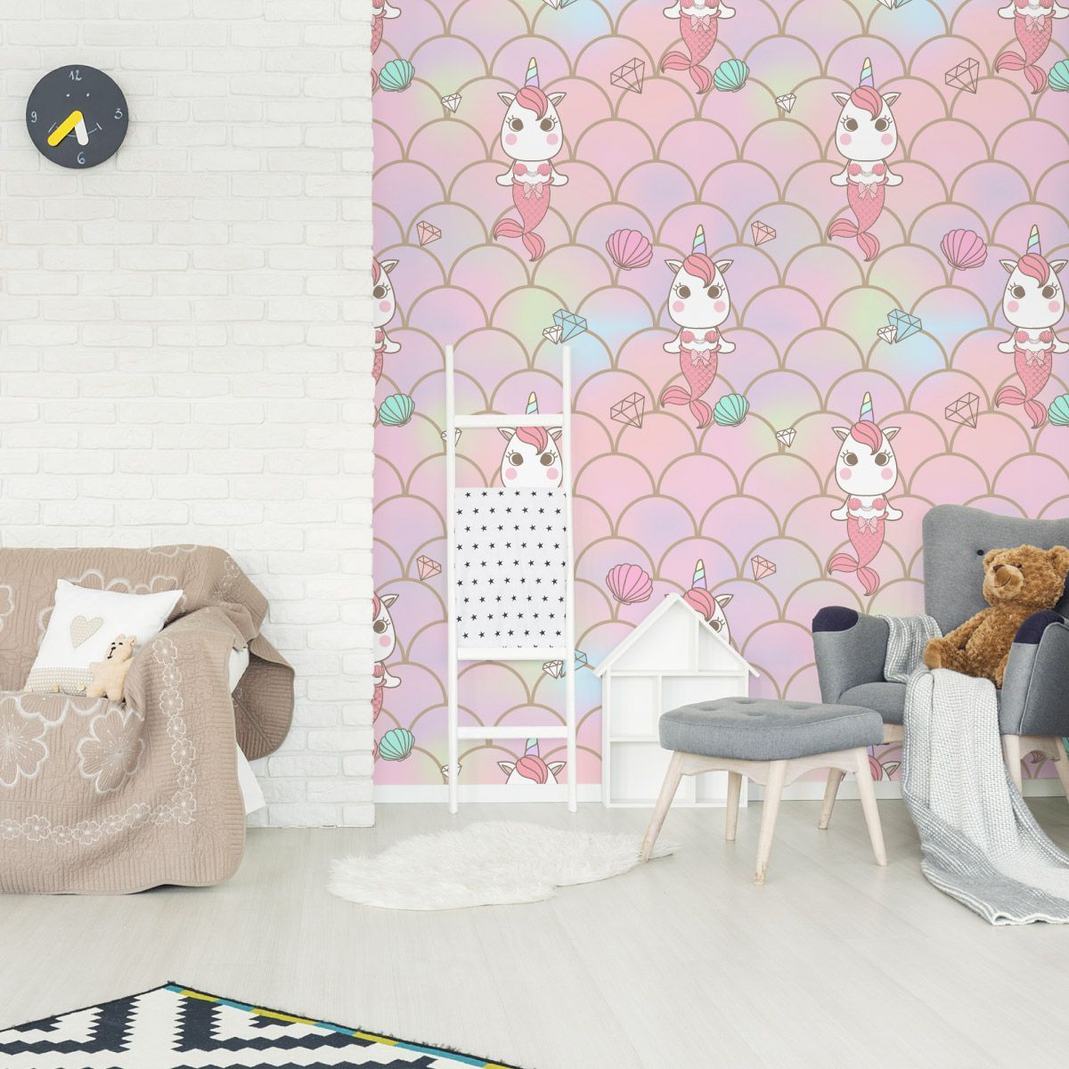 10m VLIES TAPETE Rolle Kinderzimmer Einhörner Diamanten Sirenen Natur XXL 3651
