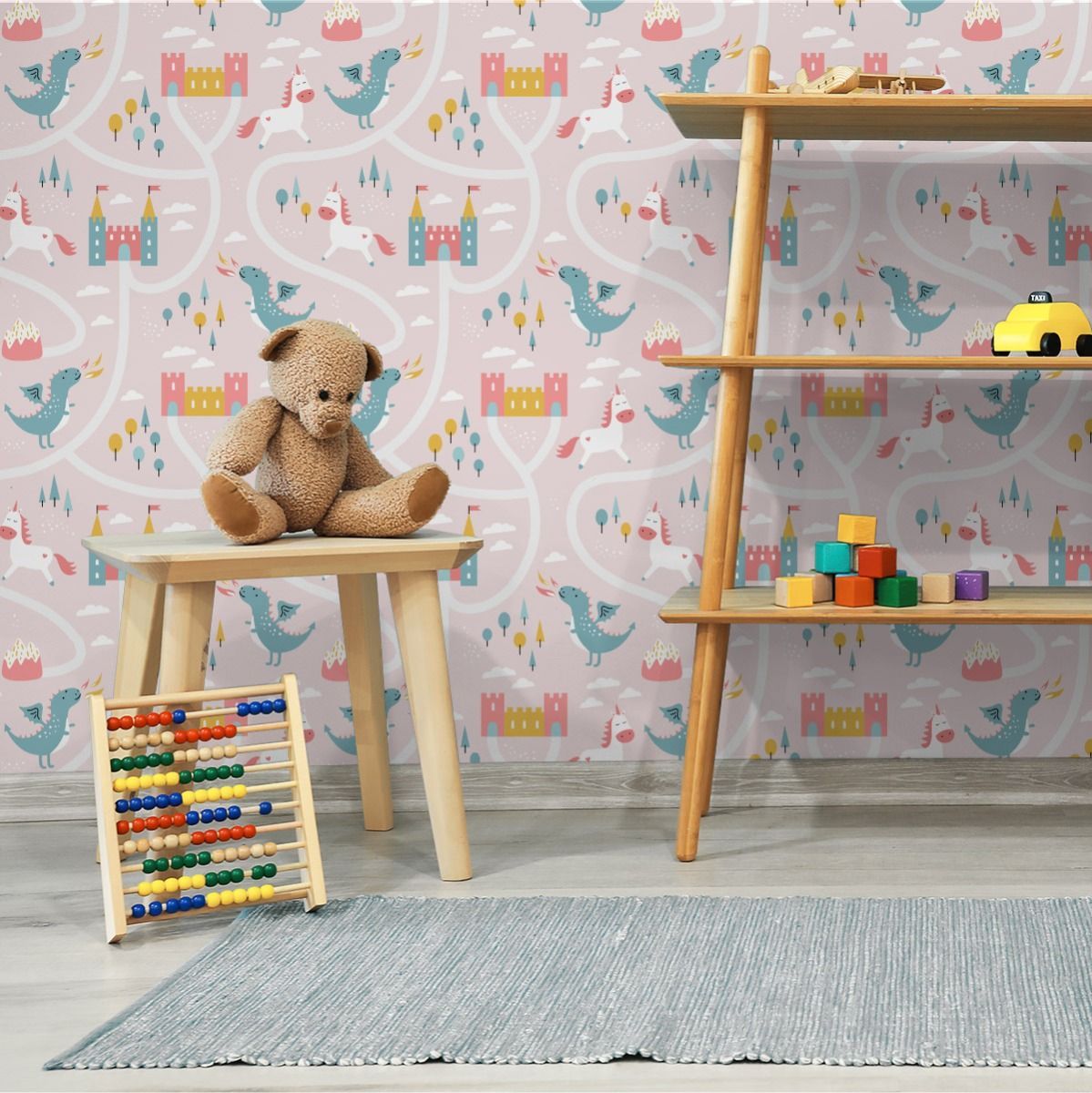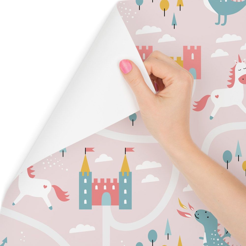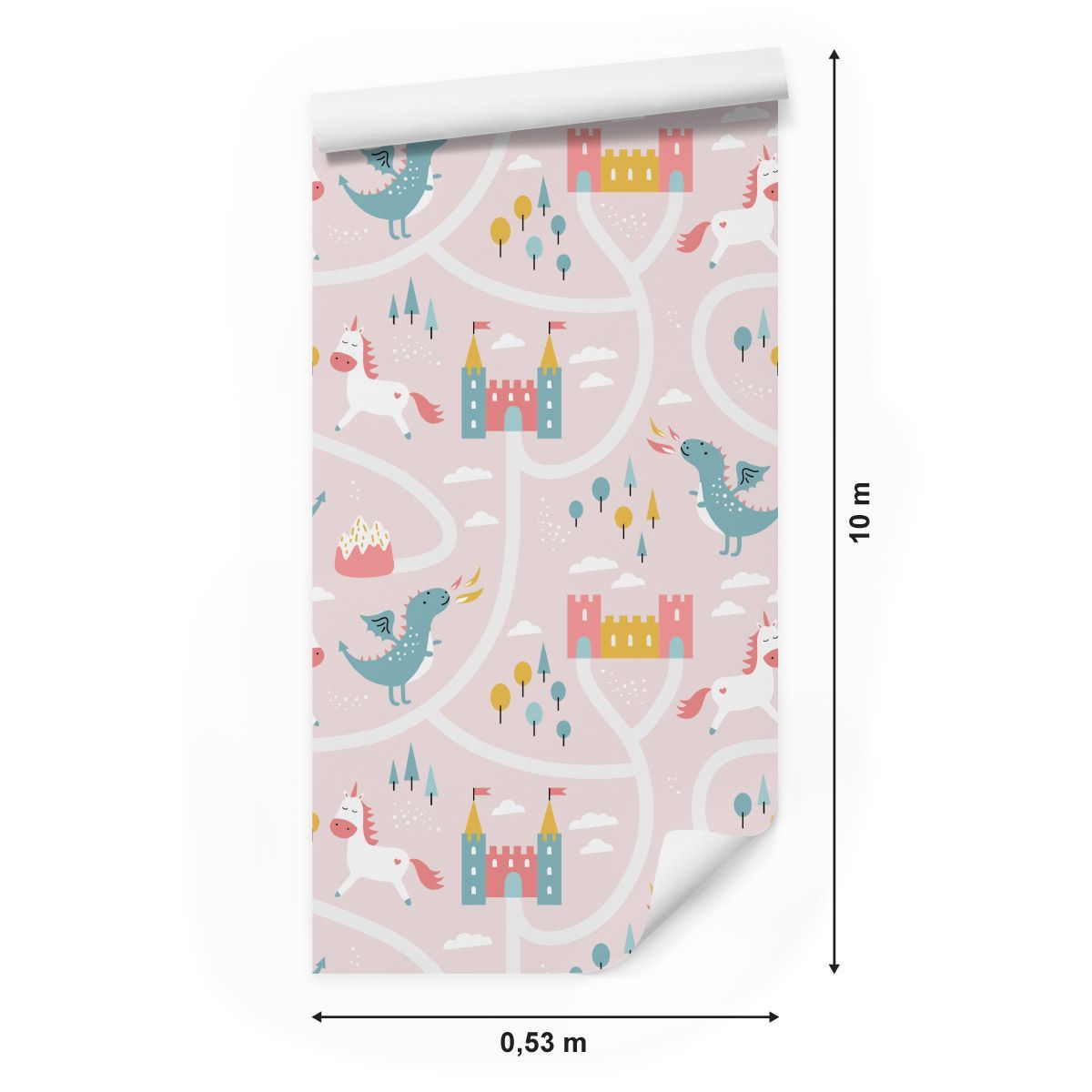 10m VLIES TAPETE Rolle Kinderzimmer Einhörner Drachen Schlösser Bunt XXL 2144