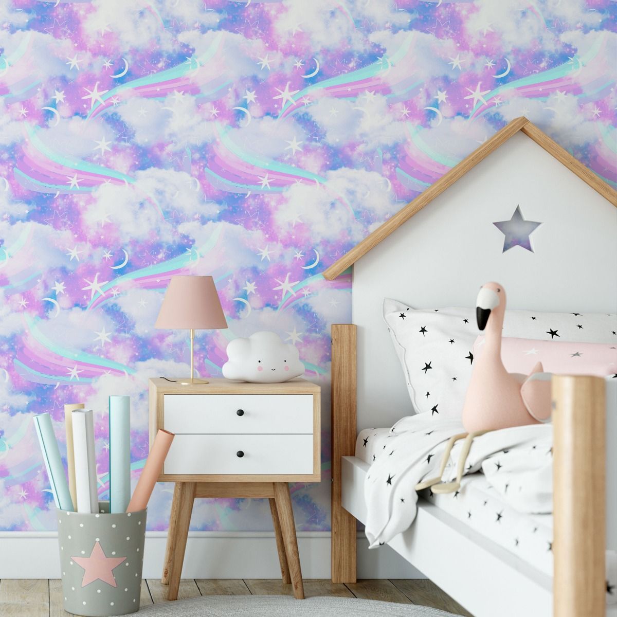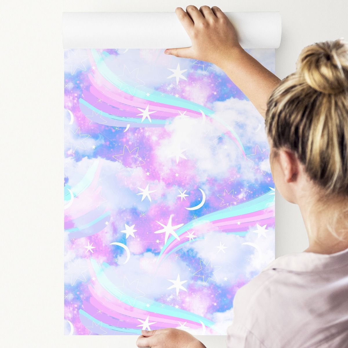 10m VLIES TAPETE Rolle Kinderzimmer Himmel Regenbogen Wolken Sterne XXL 1691