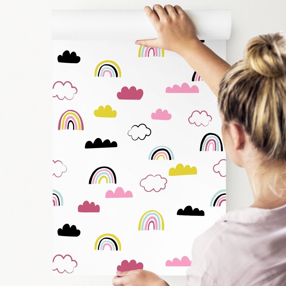 10m VLIES TAPETE Rolle Kinderzimmer Himmel Wolken Regenbogen Muster XXL 1728