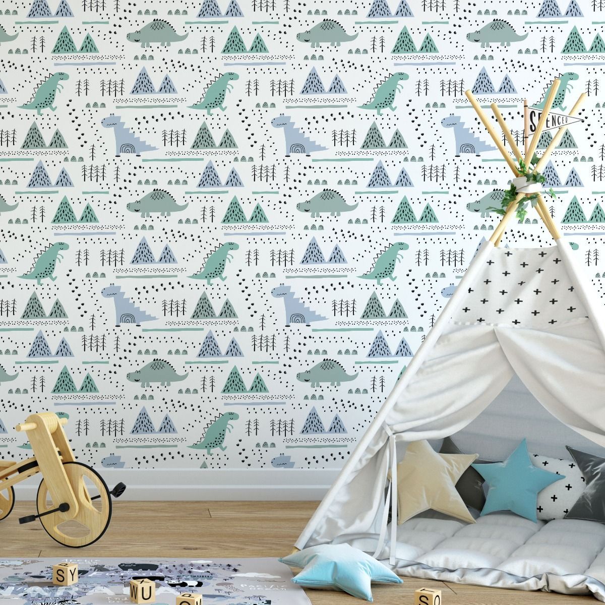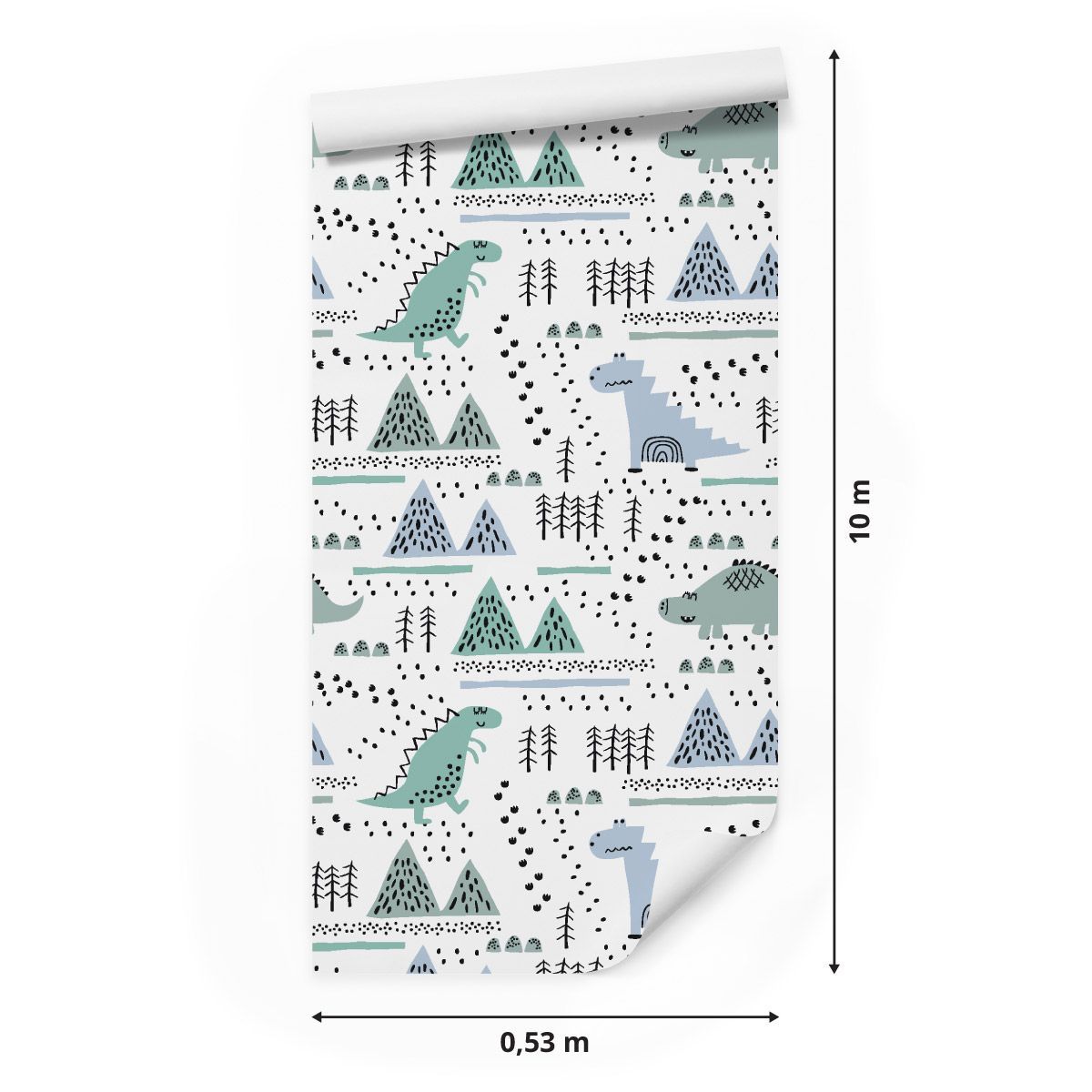 10m VLIES TAPETE Rolle Kinderzimmer Junge Dinosaurier Bäume Berge XXL 1563