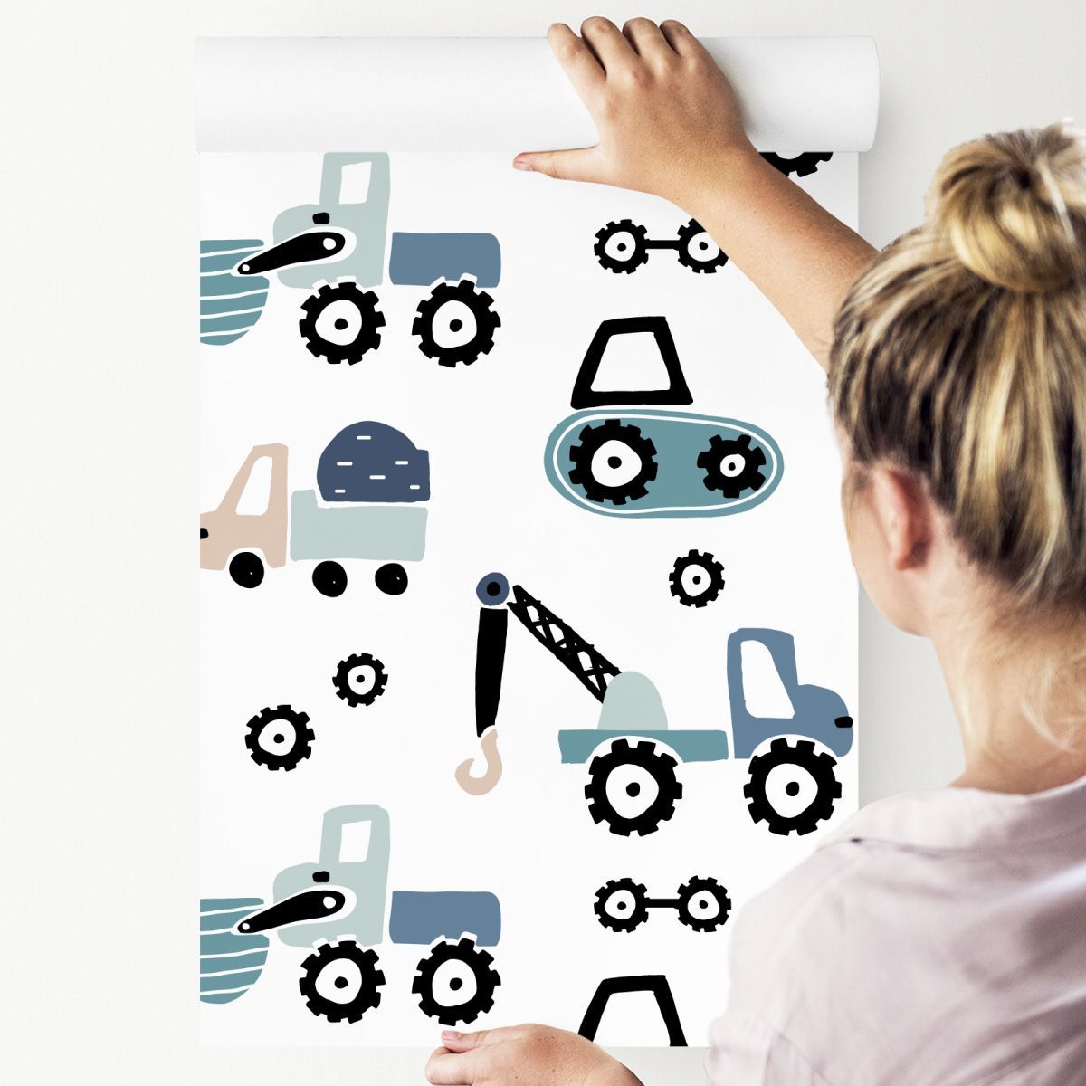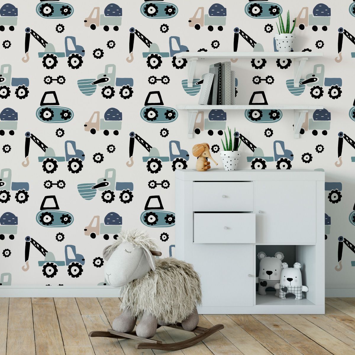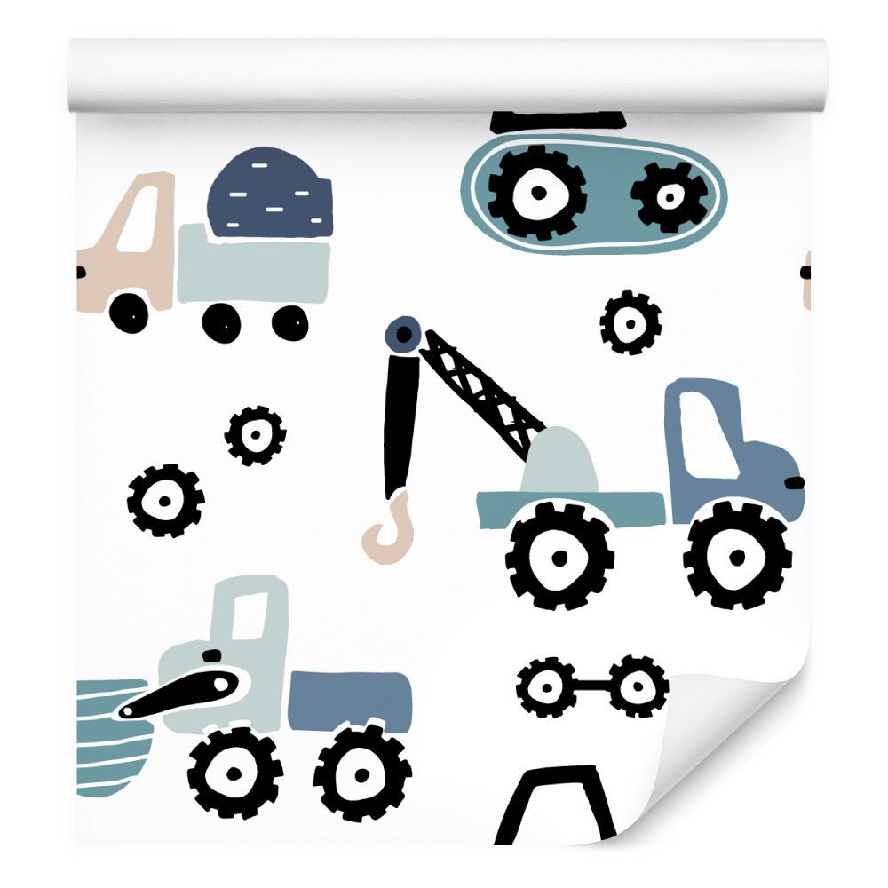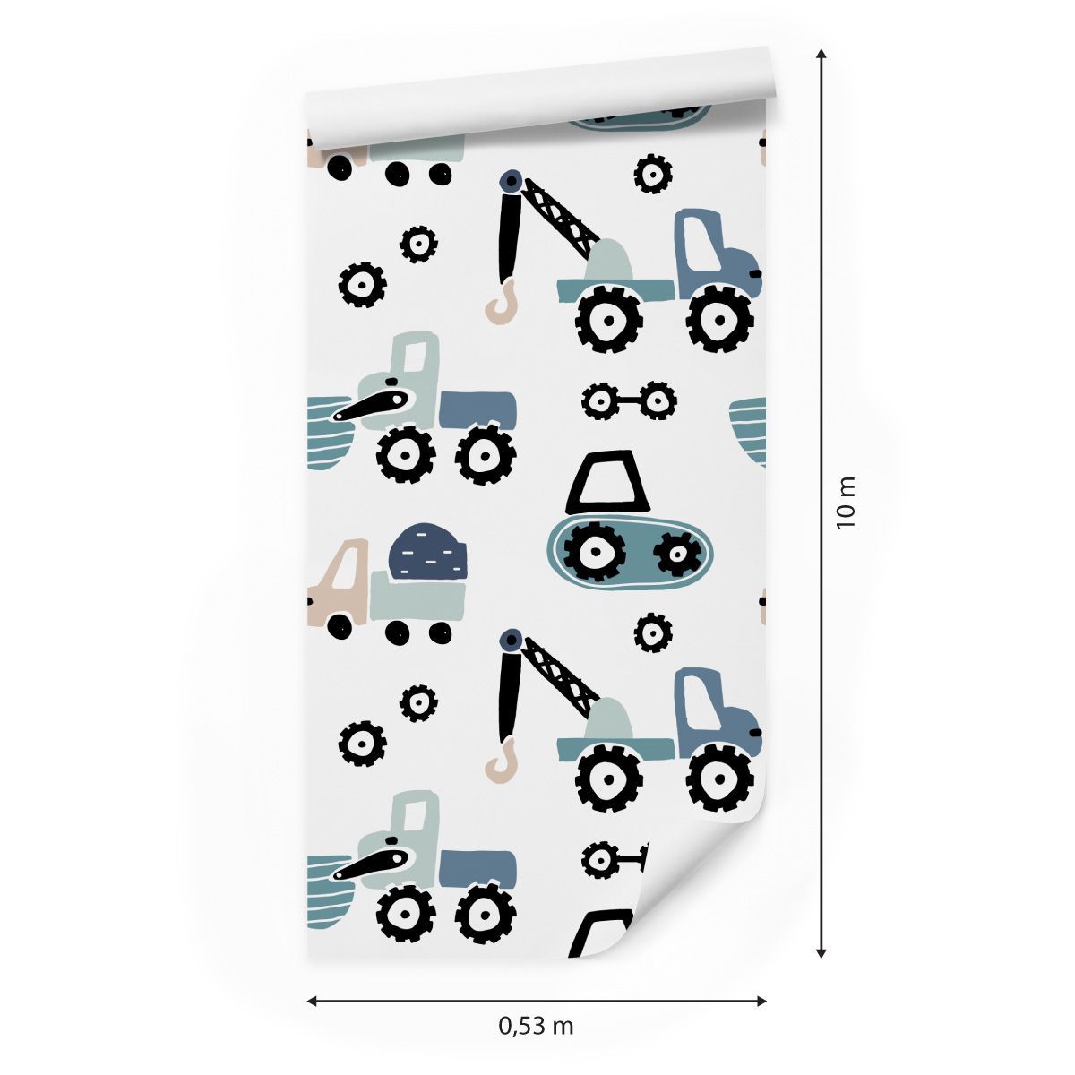 10m VLIES TAPETE Rolle Kinderzimmer Lastkraftwagen Bagger Kräne Räder XXL1558
