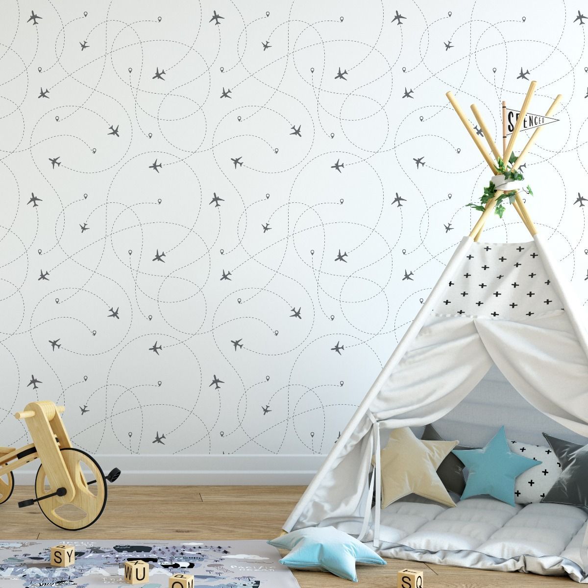 10m VLIES TAPETE Rolle modern für Kinder Flugzeuge Muster Dekor 5878